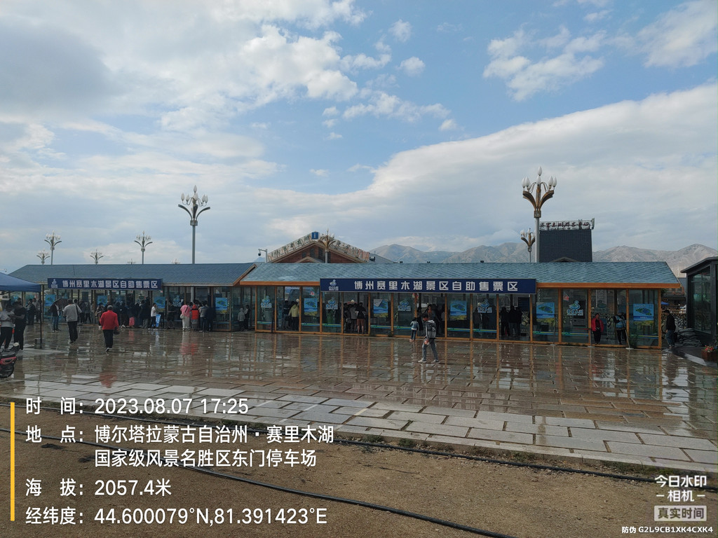 上午9点半左右从夏塔出发,走伊昭公路、连霍高速到达赛里木湖景区东门游客中心,自助换取自驾游门票,下午17点半左右进入景区游览。