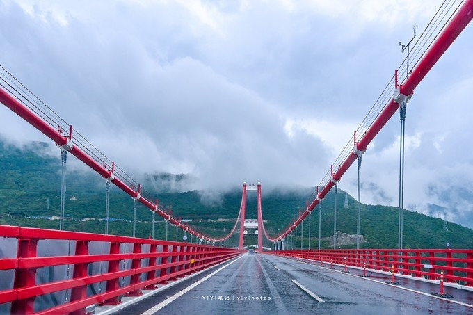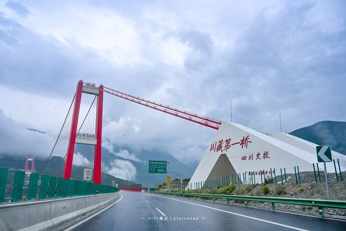 路途中还会经过 泸定大渡河 大桥,是雅康高速公路上唯一一座建在高海拔高地震烈度带的超大跨悬索桥,第一眼看到时还是蛮震撼的,被誉为“川藏第一桥”。