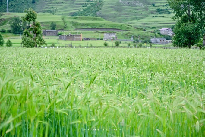 在村庄里还藏有无数片大美的青稞,是高原里特有的景色,放眼望去满是令人心醉的绿色。