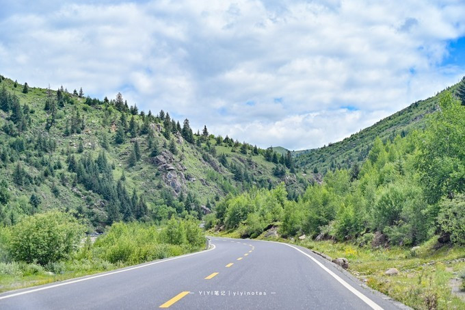 这条公路的两边长满了高大的树木,等到秋天会变成一片金黄色,肯定又是另一番意境了。