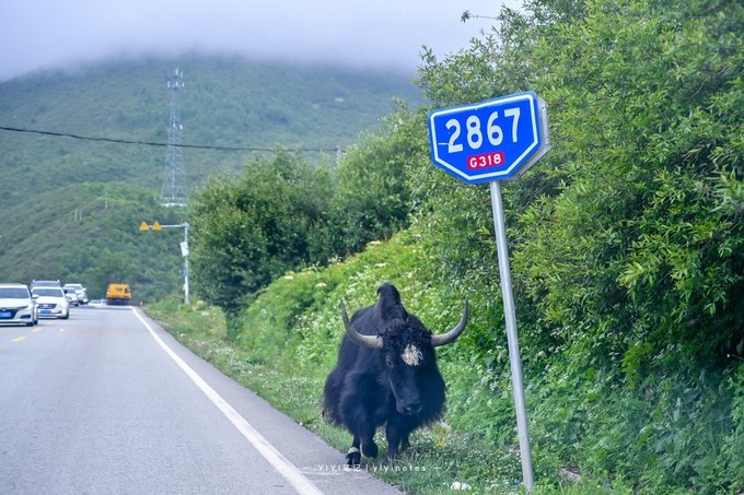 在公路边还看到了一只牦牛,正在不紧不慢的散步。