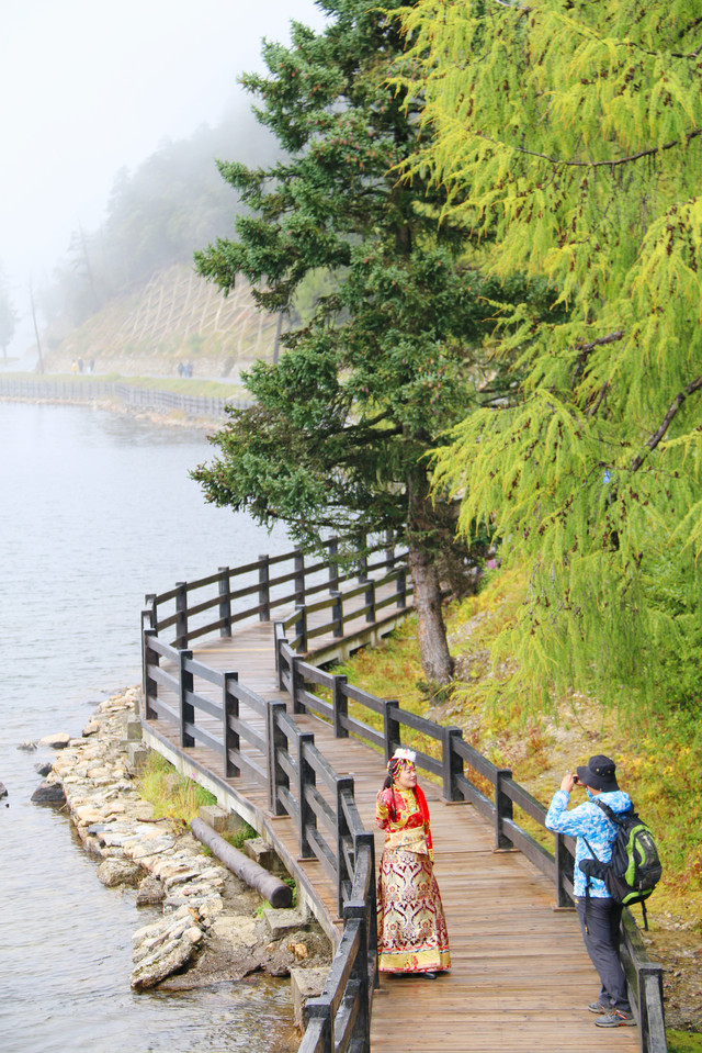 这是川西北最大的高原湖泊之一,湖周环绕着松林、杜鹃林,我们去的时候天气不是很理想,浓雾缭绕,一直不散开,不过朦朦胧胧的样子也蛮有意境的,像极了江南水乡。