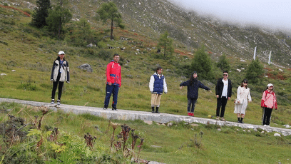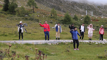 但身边这群爱玩会玩的小伙伴,真是在哪都能玩出花来~都是不会高反的大佬,草原上随性起舞,消解掉坏天气带来的烦闷感~