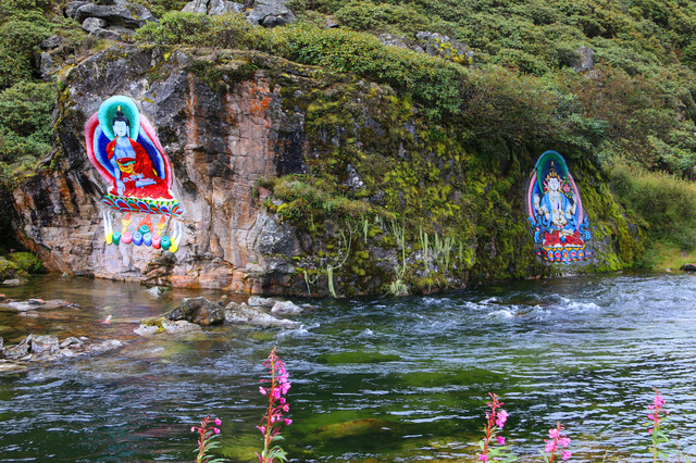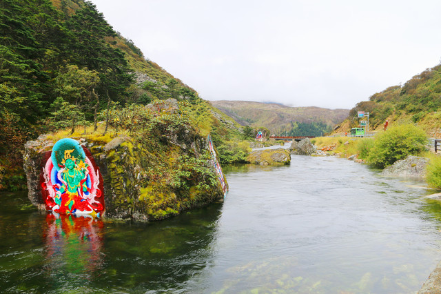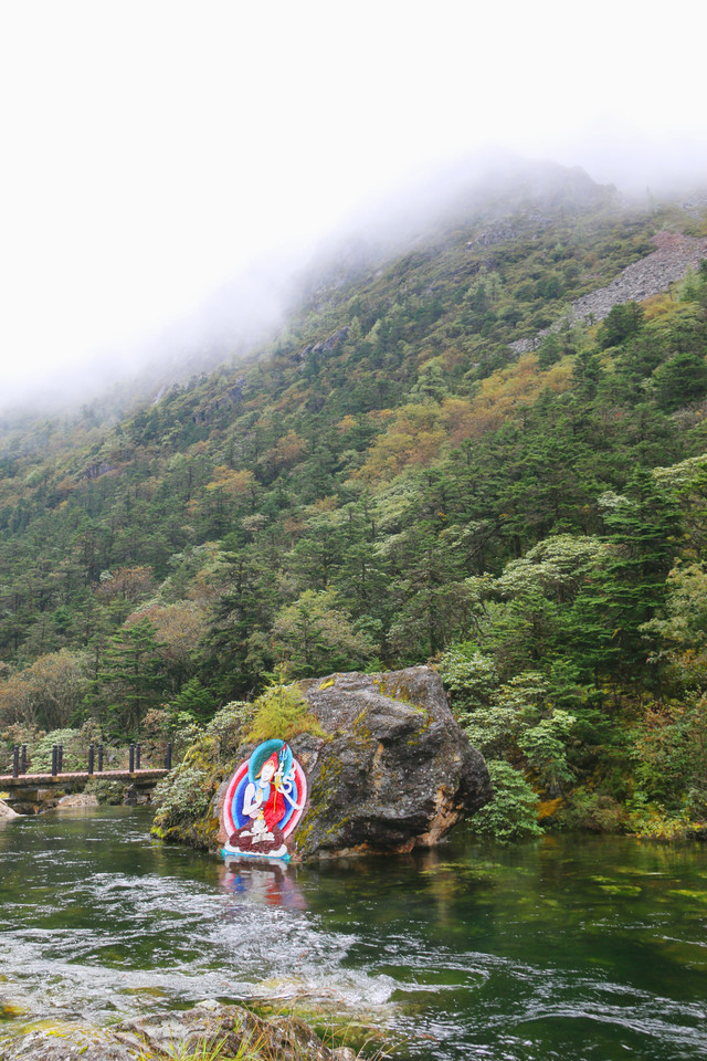 这里的风景整体都很安静,少了木格措的宽广辽阔,也没有千瀑峡的激流澎湃,溪水缓缓流淌,佛像庄严肃穆,让人很容易静下心来。