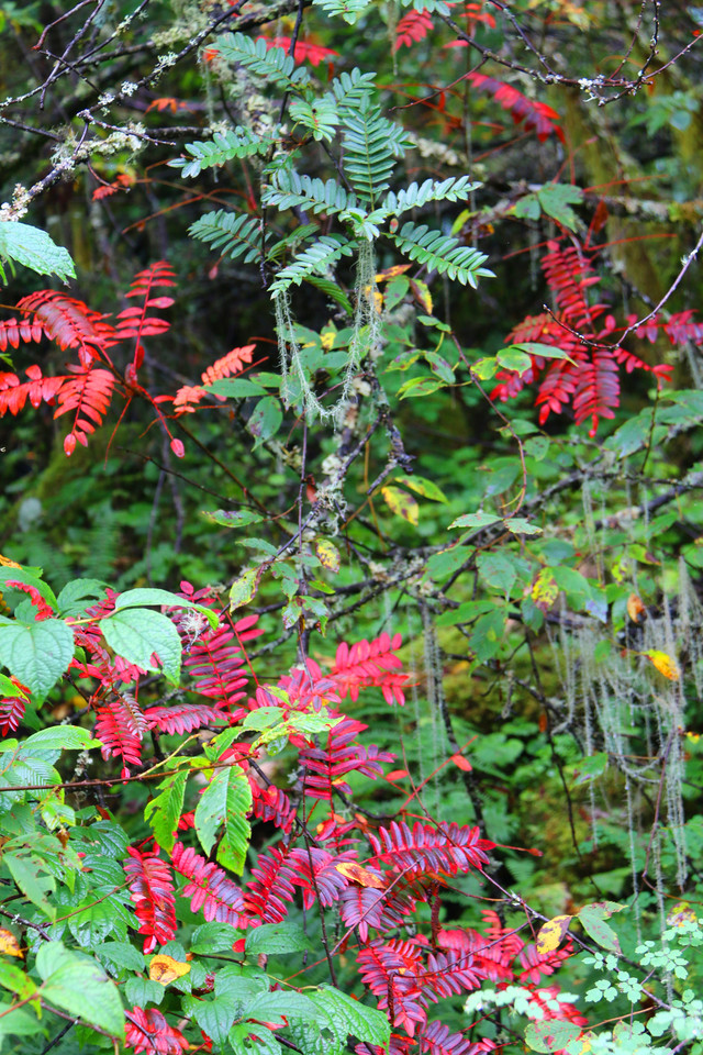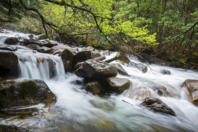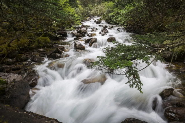 大大小小的飞瀑溪流如万马奔腾而下,时而奔流,时而舒缓,林木葱郁,一场彩林盛宴即将在溪岸两边上演!