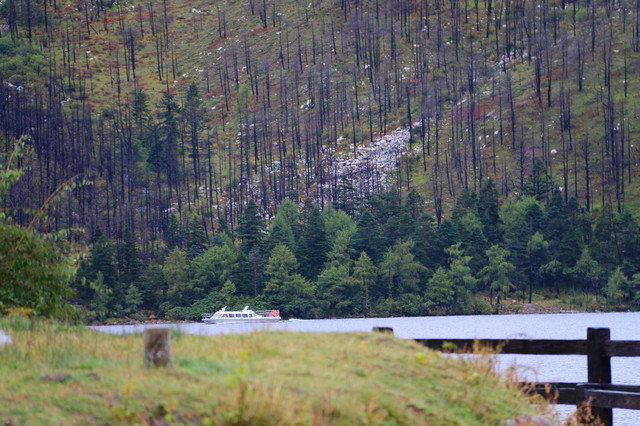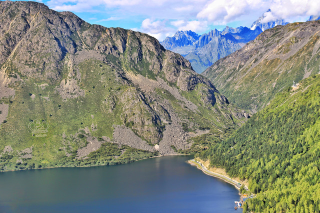 进入景区后,直接乘观光车一路往上,经历不知多少个弯弯拐拐后,抵达最高点——木格措,一个水域面积达4平方公里的高原湖泊。