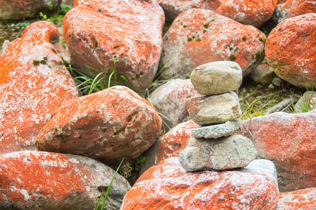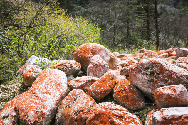 顺着栈道继续往下,到达红石滩,这里红石成群,可以停下来打卡拍照。除此之外,景区里海拔3000米以上的地方,基本都有红石分布,极为壮观。
