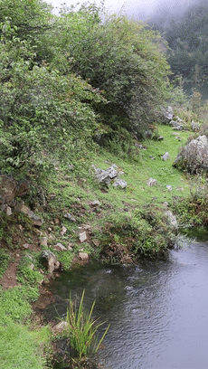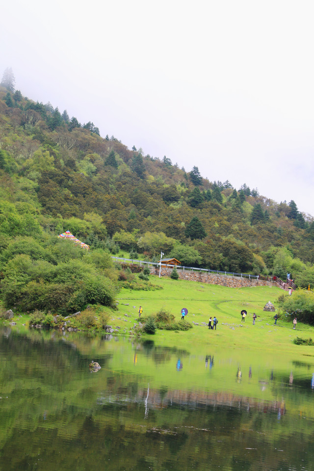 与木格措风格各异的一处湖泊,温泉与湖水交融,如果遇上好天气,可以看到湖水颜色变幻无穷的样子,我们去的时候下着雨,也有另一番风情。