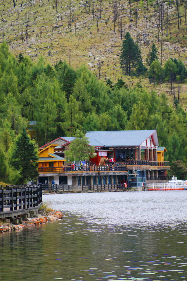 湖边的栈道、餐厅旁长长的走廊、湖边空旷的公路,都是不错的取景拍片地,还可以在景区租一身特色藏服,化身娇羞的藏族姑娘,真的是又甜又美。