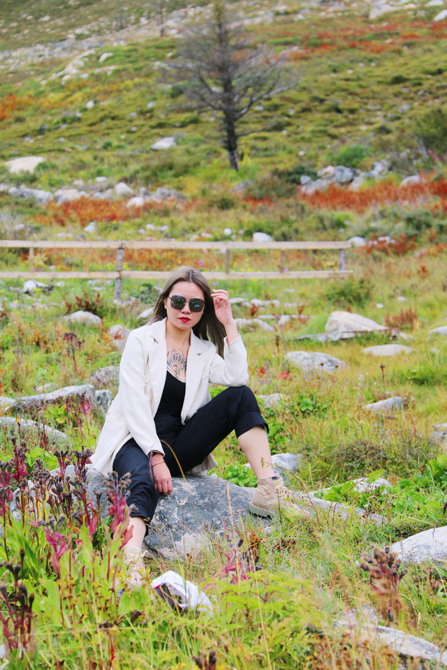 临水而生的空阔草原,也能成为酷girl的绝佳背景,随手一张,感觉都飒得不行!刚好还能换个角度看木格措圣湖,感受另一面的雄奇俊美。