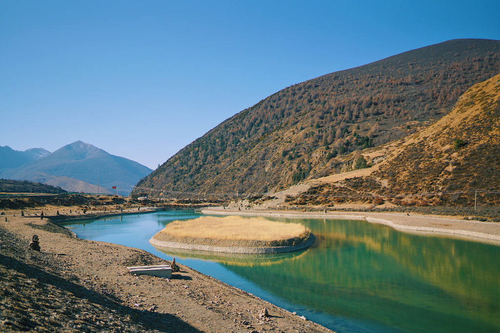 为了不丢素材,我和同行的摄影师在三千多米的高原徒手攀岩,历经一个小时终于找到了无人机的“尸体”,短暂的时间里心情起起伏伏,也迎来了旅途中的第一次高反,不得不停下来吸氧。中间碰到一个漂亮的湖面,还停下来拍了两张照片,也算是一点心理安慰了。筋疲力尽的回到车上,已经急需补充葡萄糖来缓解了,果然任何时候都不能放松身体锻炼啊!