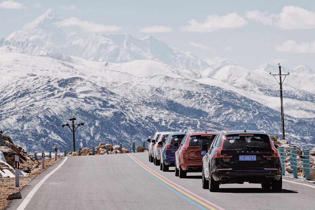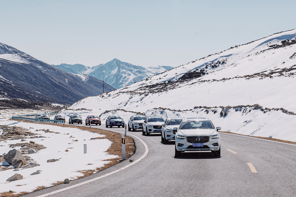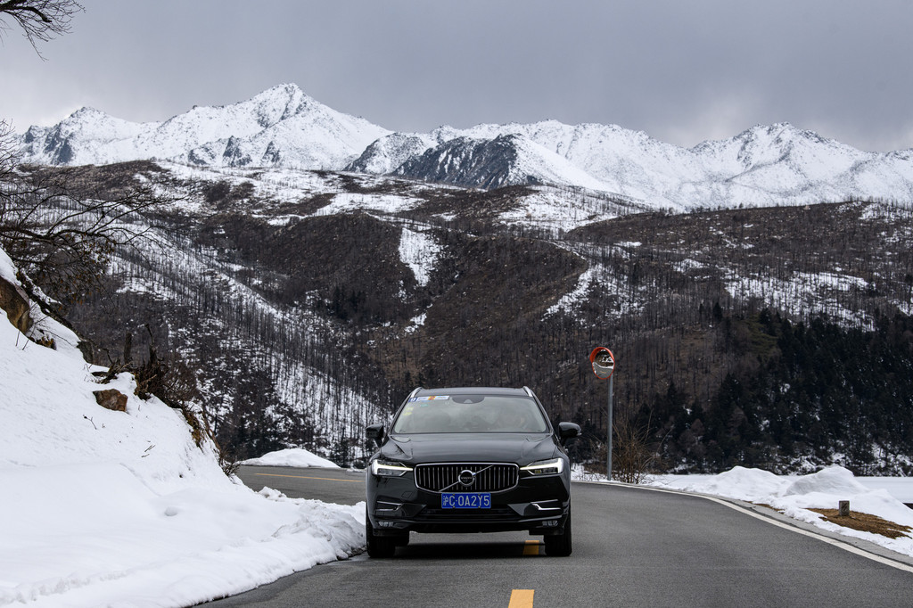驱车前行,时而会乌云满天,时而路过依旧干枯的树林,冰冷的雪山清晰的像是一伸出手就能碰到,往往却能在下一个转弯处遇上阳光明媚的好天气。318国道蜿蜒曲折,虽然路况良好,但要一直谨慎小心驾驶,好在xc60从T5车型开始,就配置Pilot Assist领航辅助系统,0-130公里/小时内辅助加速、刹车和转向功能,让我这一路从容了许多。