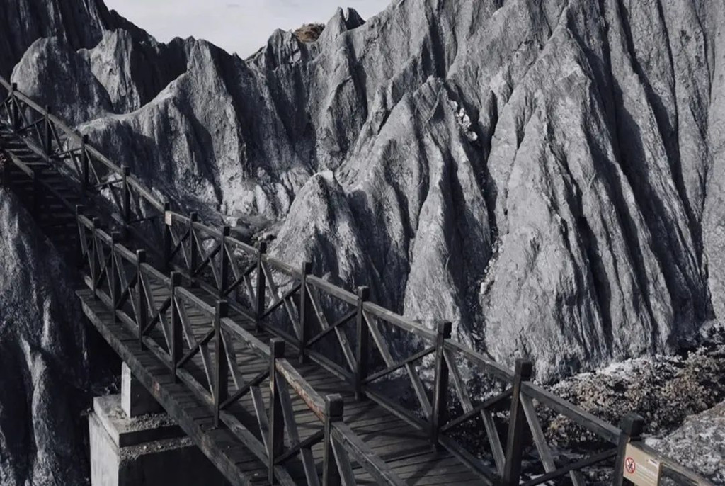 绵延的墨色山体如同画家笔下动人的中国水墨画,远山如黛,嶙峋脉络,这里的一切,都是造物主神一般的手笔;