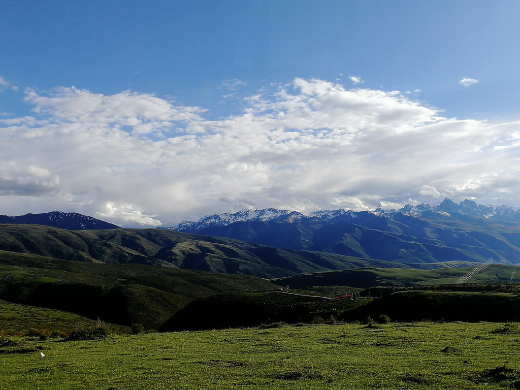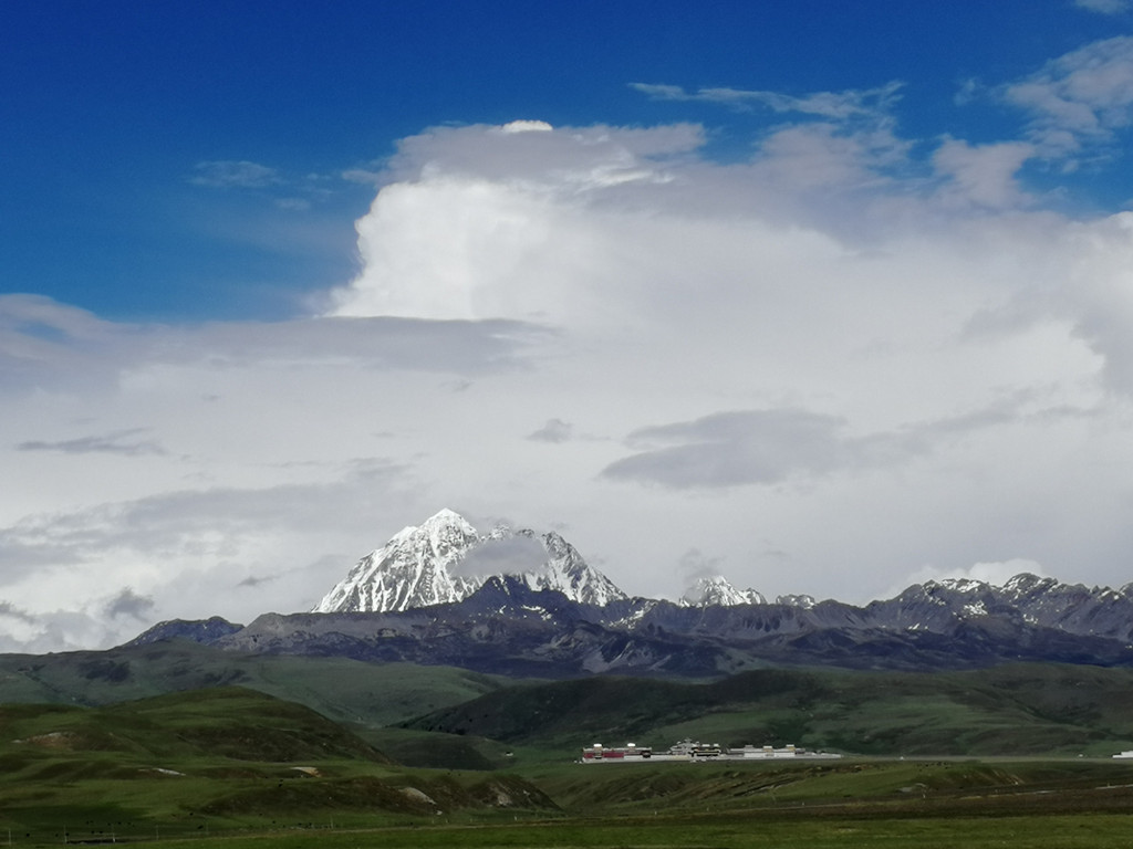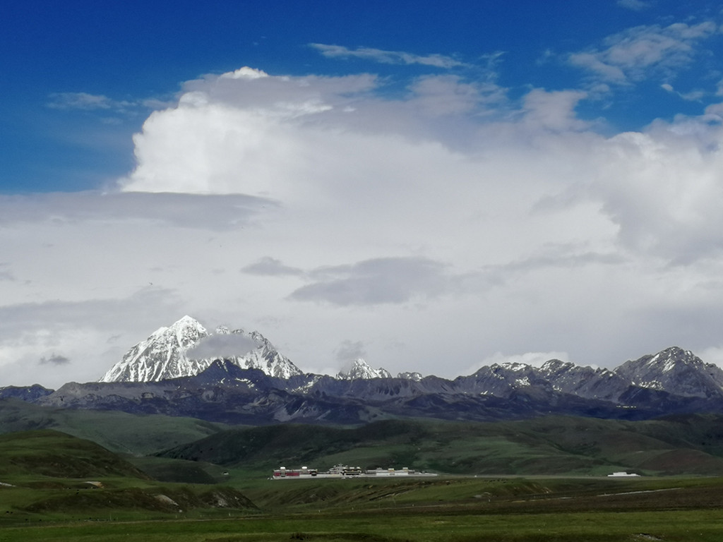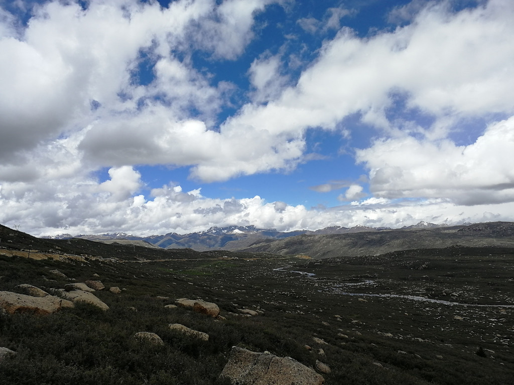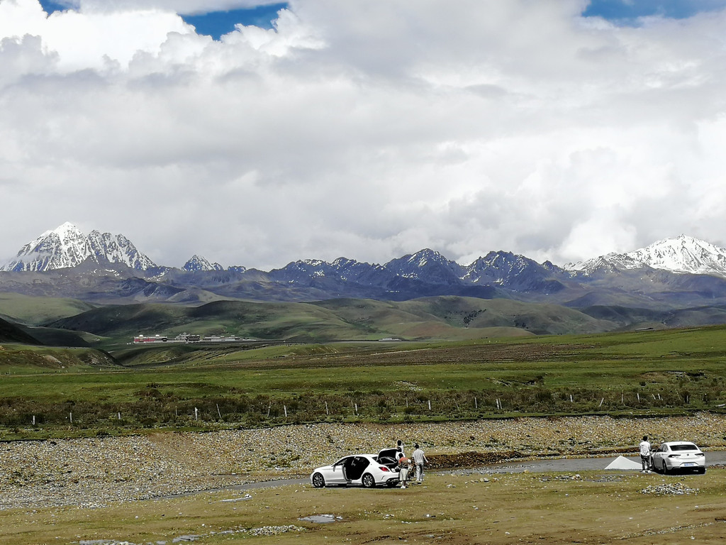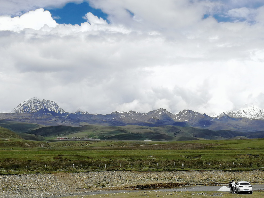 中午12点50到了塔公草原,在一处可以远眺雅拉雪山的平地停车,这时的雅拉雪山被云层所遮挡,暂时没有露出尊容,我们可以等,因为这时候我们准备就在平地这吃自带的自热米饭。照例还是我车内加热自热米饭,杨公子车外拍拍照、踱踱步,一阵突如其来的降雨,把杨公子赶回了车内。这场雨来的快去的也快,等我们吃完午饭,没多久就雨过天晴了,雨后的蓝天白云分外惊艳,雅拉雪山也露出了真容。