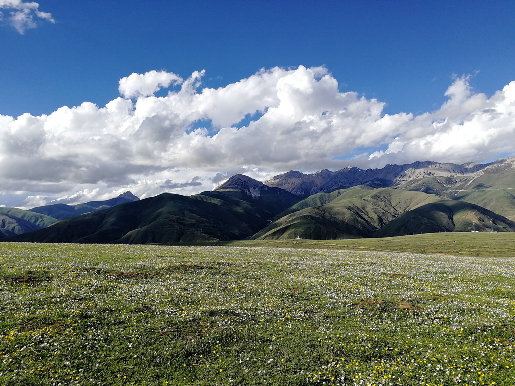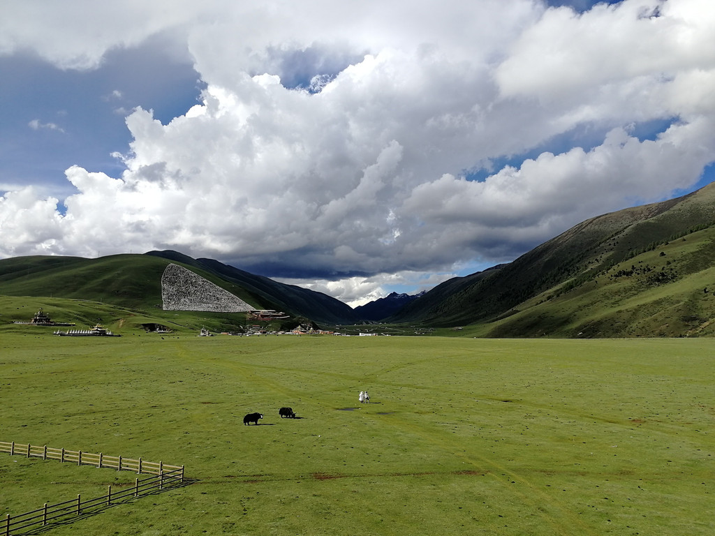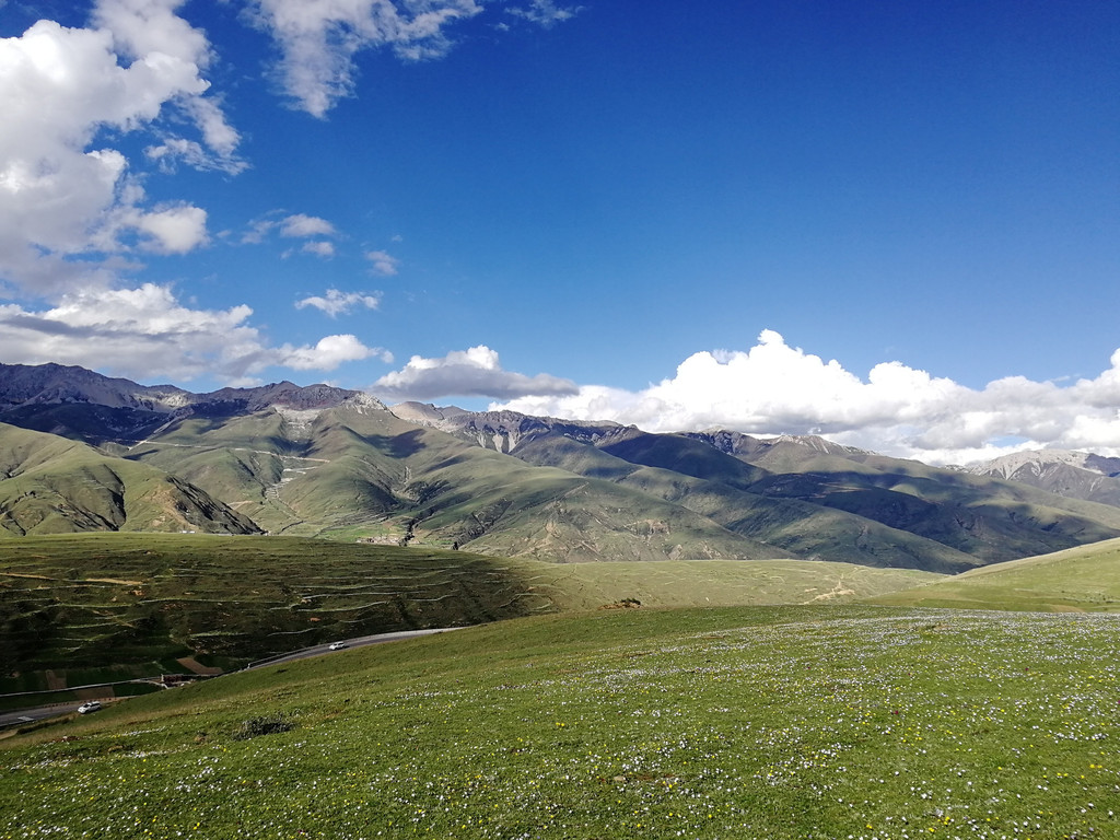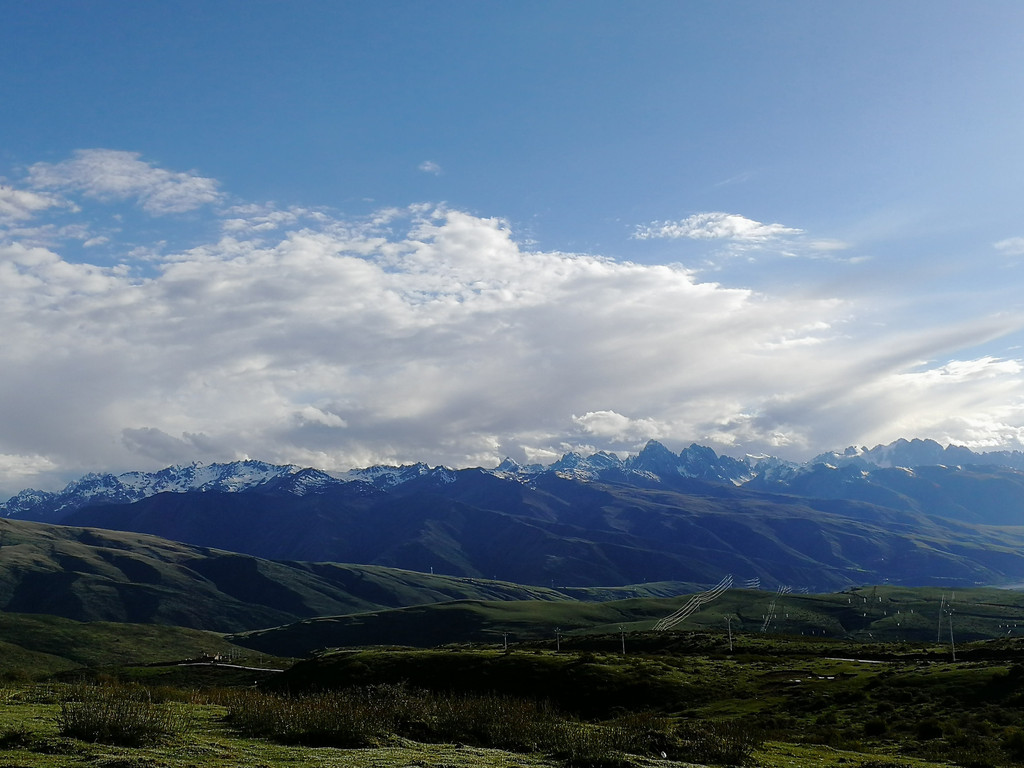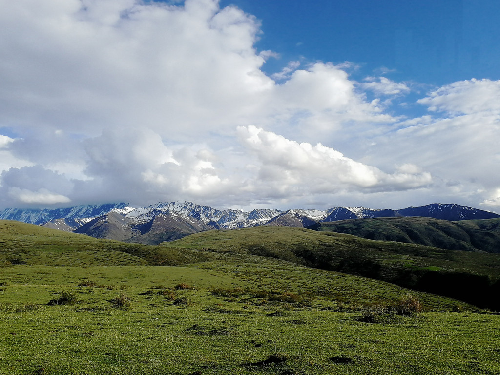 中午12点50到了塔公草原,在一处可以远眺雅拉雪山的平地停车,这时的雅拉雪山被云层所遮挡,暂时没有露出尊容,我们可以等,因为这时候我们准备就在平地这吃自带的自热米饭。照例还是我车内加热自热米饭,杨公子车外拍拍照、踱踱步,一阵突如其来的降雨,把杨公子赶回了车内。这场雨来的快去的也快,等我们吃完午饭,没多久就雨过天晴了,雨后的蓝天白云分外惊艳,雅拉雪山也露出了真容。