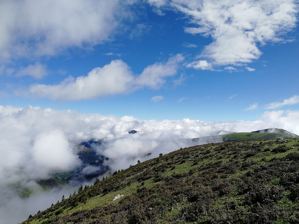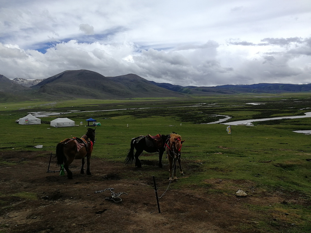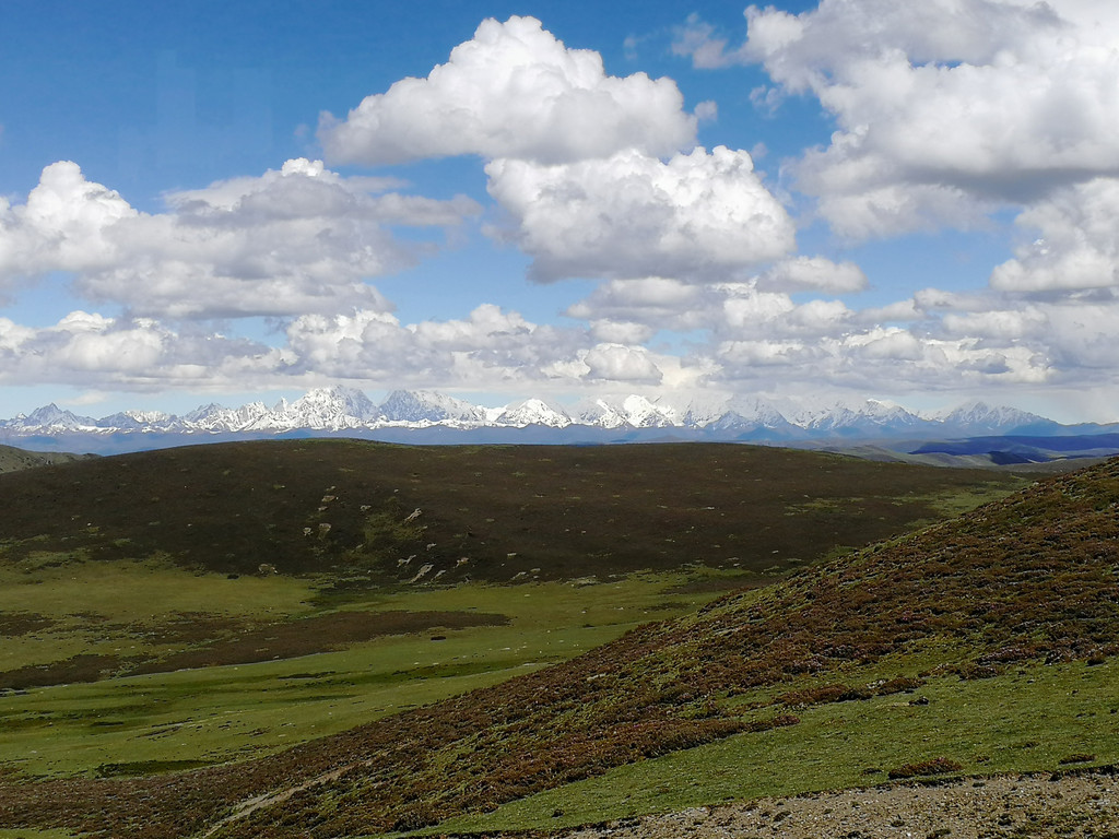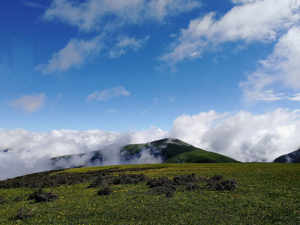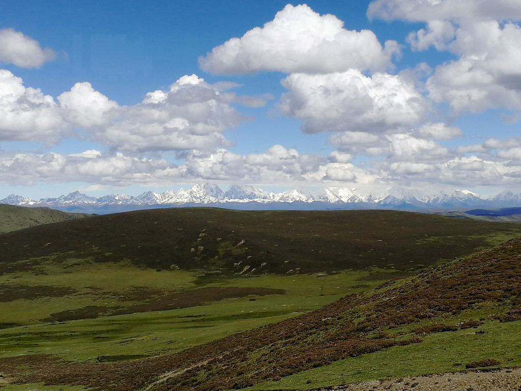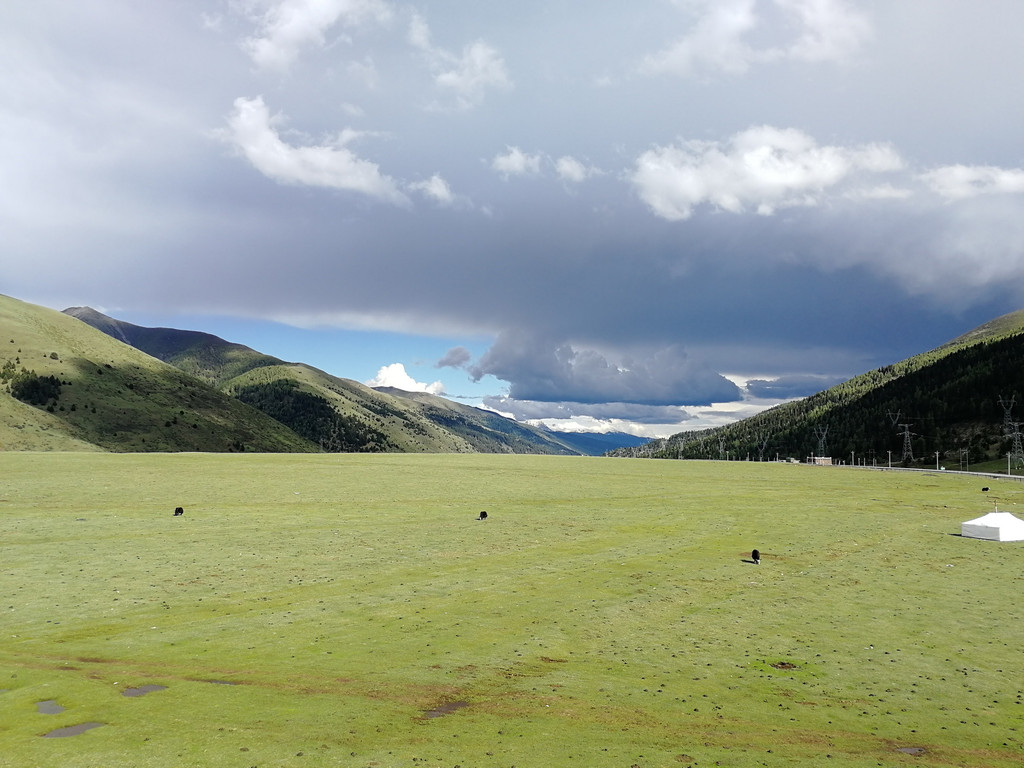中午12点50到了塔公草原,在一处可以远眺雅拉雪山的平地停车,这时的雅拉雪山被云层所遮挡,暂时没有露出尊容,我们可以等,因为这时候我们准备就在平地这吃自带的自热米饭。照例还是我车内加热自热米饭,杨公子车外拍拍照、踱踱步,一阵突如其来的降雨,把杨公子赶回了车内。这场雨来的快去的也快,等我们吃完午饭,没多久就雨过天晴了,雨后的蓝天白云分外惊艳,雅拉雪山也露出了真容。