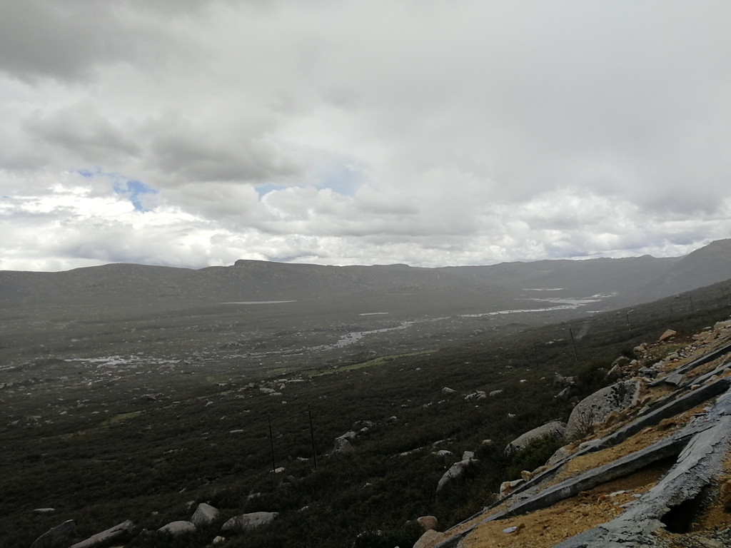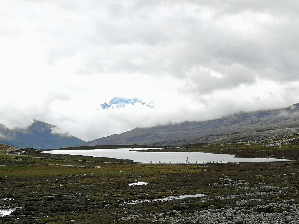 过了卡萨湖观景台不远,在一个停车区,我们看见了连绵起伏的雪山(只要看见山顶上是白色的,我都叫雪山,嘻嘻),我看见有一条小路,沿着这条路可以驾车离雪山更近点,我们决定去看看。