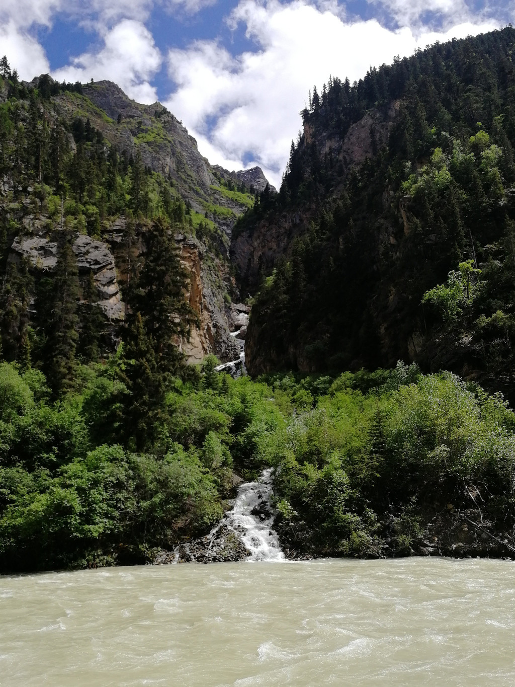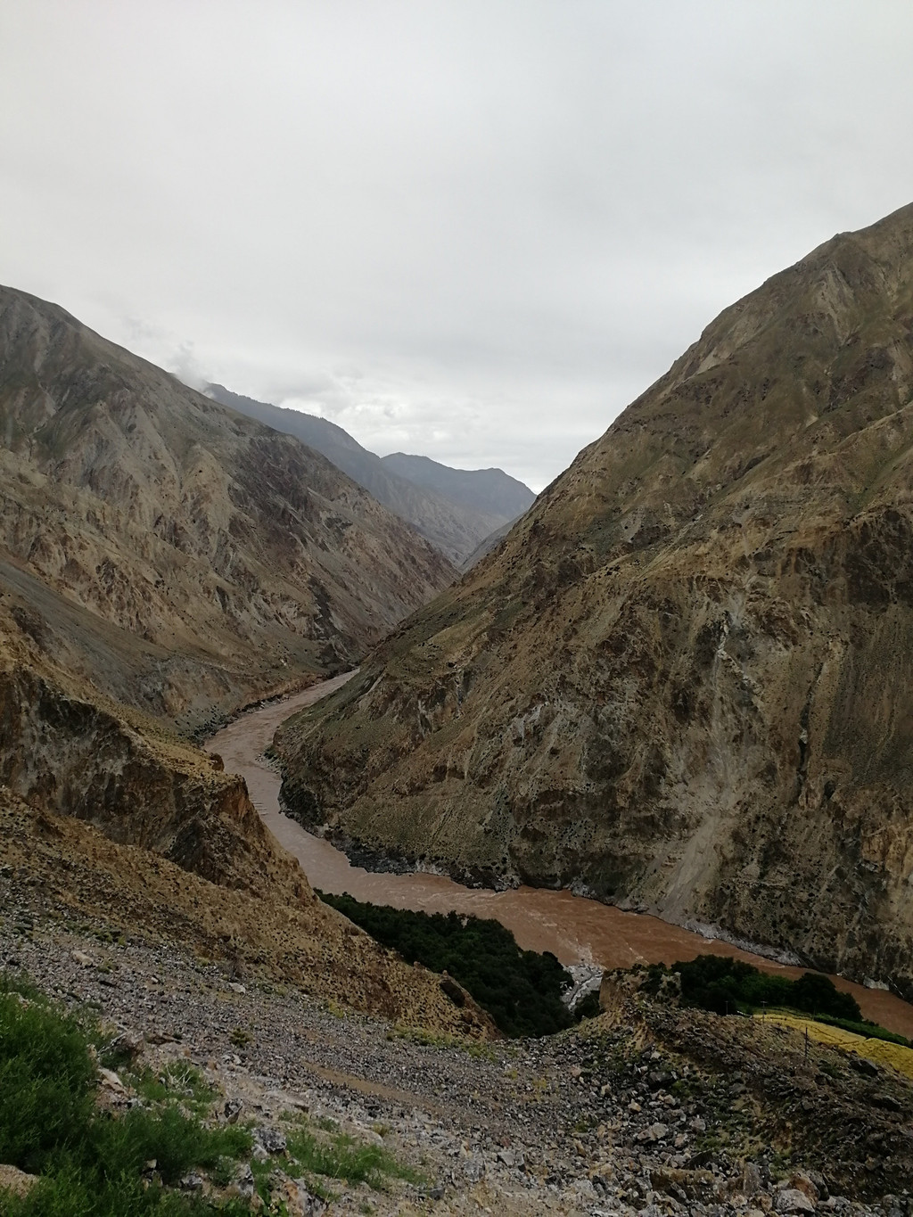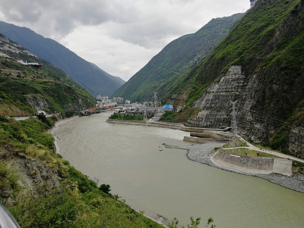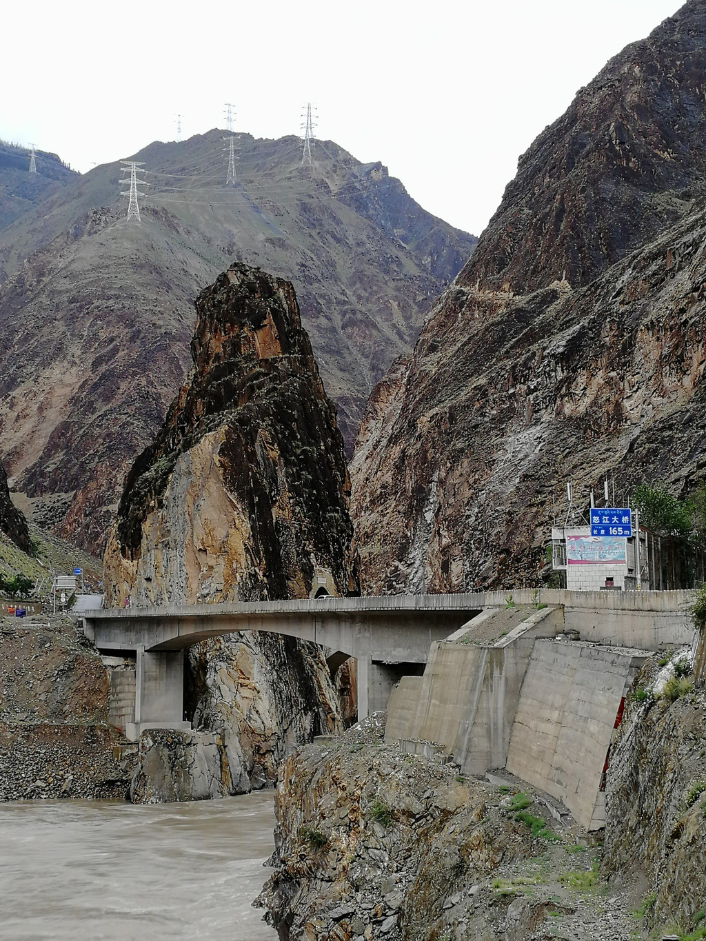 吃完午饭,我们休息了一个小时继续上路,因为泸定到康定高速全是隧道,会开得很无聊,决定走318国道。国道果然一路风景不错,沿着大渡河行车,比钻隧道有趣多了。