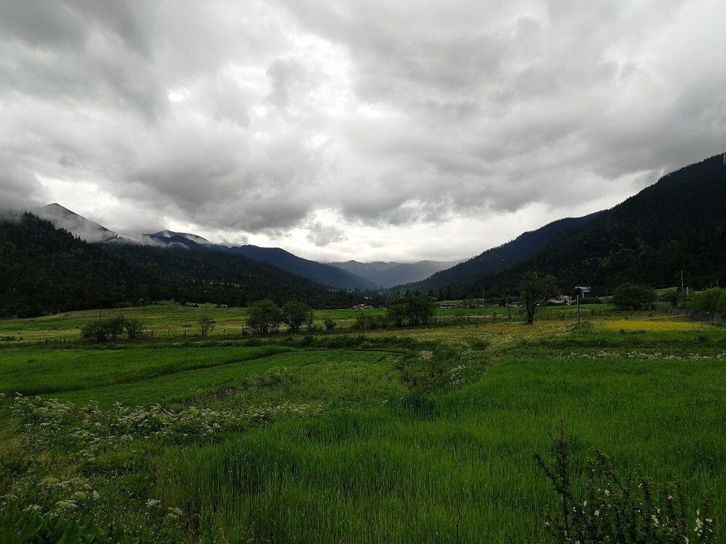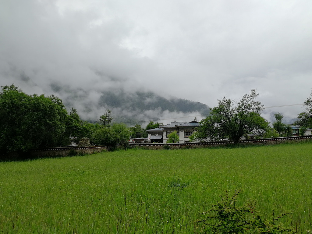 今天看着天气很好,蓝天白云,到了索松村,才明白啥叫善变,买门票时还是艳阳高照,到了客栈却下雨了,南迦巴瓦,影子都没有。因为没有客人,客栈老板给了我一间最好的景观房,我坐在落地窗前面,眼望着南迦巴瓦峰的方向,脑补一下,哎,还是先去吃晚饭吧。