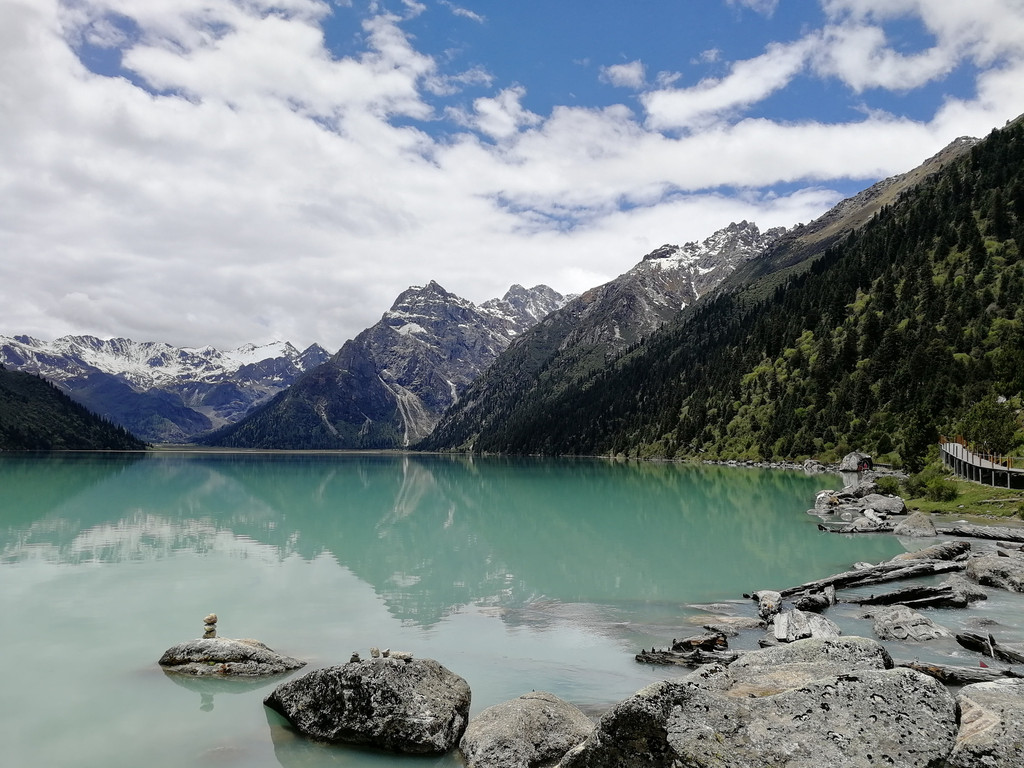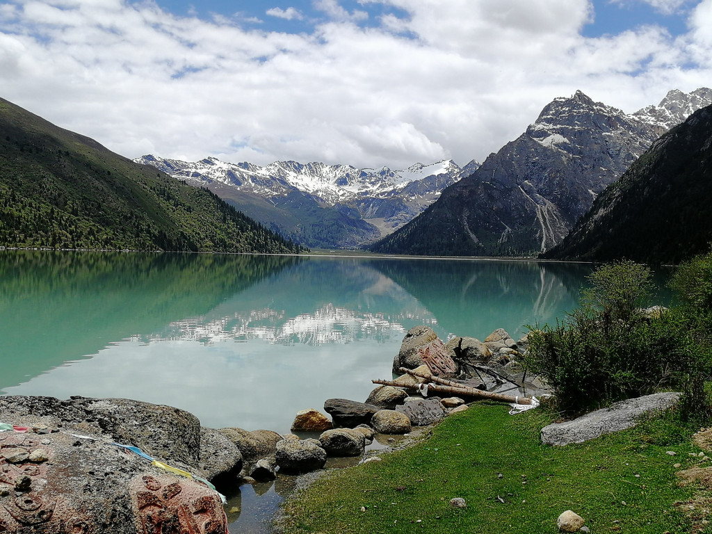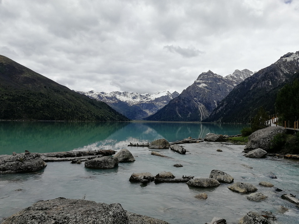 路过玉隆拉措,现在是一片工地,围着正在打造,好在离工地不远,施工者为我们这些远道而来的客人开了一扇门,搭了一个桥,还是可以从另一个地方进入玉隆拉措,不过收费30元/人,经过据理力争20成交。过河,走过一片草地,来到玉隆拉措,走在铺好的栈道,看着漂亮的玉隆拉措,感觉20还是值得的,不知道打造好后的玉隆拉措收费又是多少。