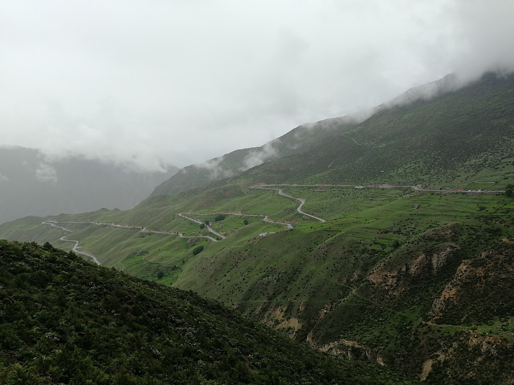 早上,邦达镇下起了小雨,我们出发时,小雨变成了中雨,感觉冷溲溲的,车车开到邦达草原观景台时,能见度很低,幸好昨天到邦达镇后,我们去了观景台。怒江72拐对于开惯了山路的我们,难度不是太大,我觉得最困难的一段在72拐最高处,路太窄了。
