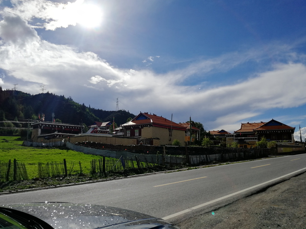 突来的阵雨又唤起了杨公子的天气意识,查了查近几天的天气,冷嘎措、理塘这几天估计都是小雨,于是开始给我吧啦吧啦了,建议今天先往道孚方向,我没意见,正着走反着走都可以,确定好行车路线,雅拉雪山看得心满意足,我们就驱车前往道孚,一路风景依然好,民居也漂亮。