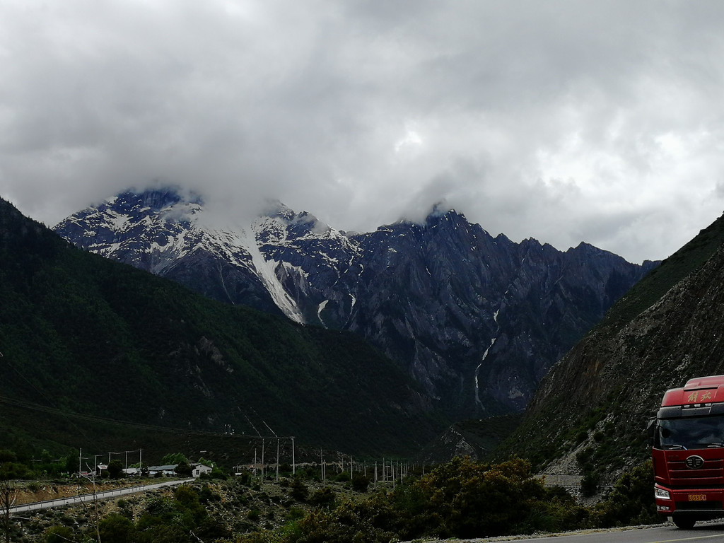 路过雅江,雅江县感觉就是建在峡谷里的县城,扩建都只能沿着峡谷延伸。过了雅江,杨公子又开始絮叨了:“天气这么好,经过高尔寺,我们去黑石城看贡嘎吧”。我想这个又是他预谋已久的吧,不过我也想去看贡嘎,那就去呗。跟着导航,只能到黑石城附近,还需步行一段。