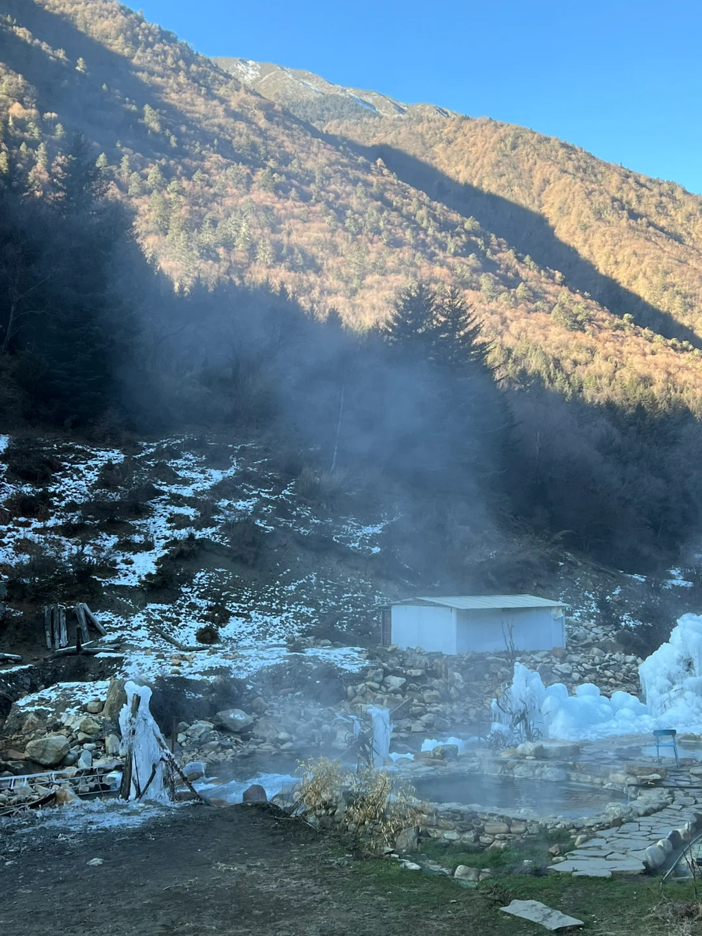 备注:上山40多分钟盘山路,路窄慢点开,背阴处路面积雪路滑🧊,两驱车挂链条⛓️。没有链条导航“大寺村村民委员会”,坐当地村民的车上山。
