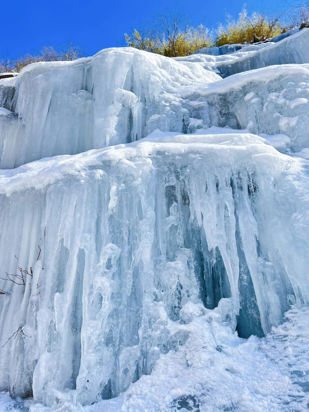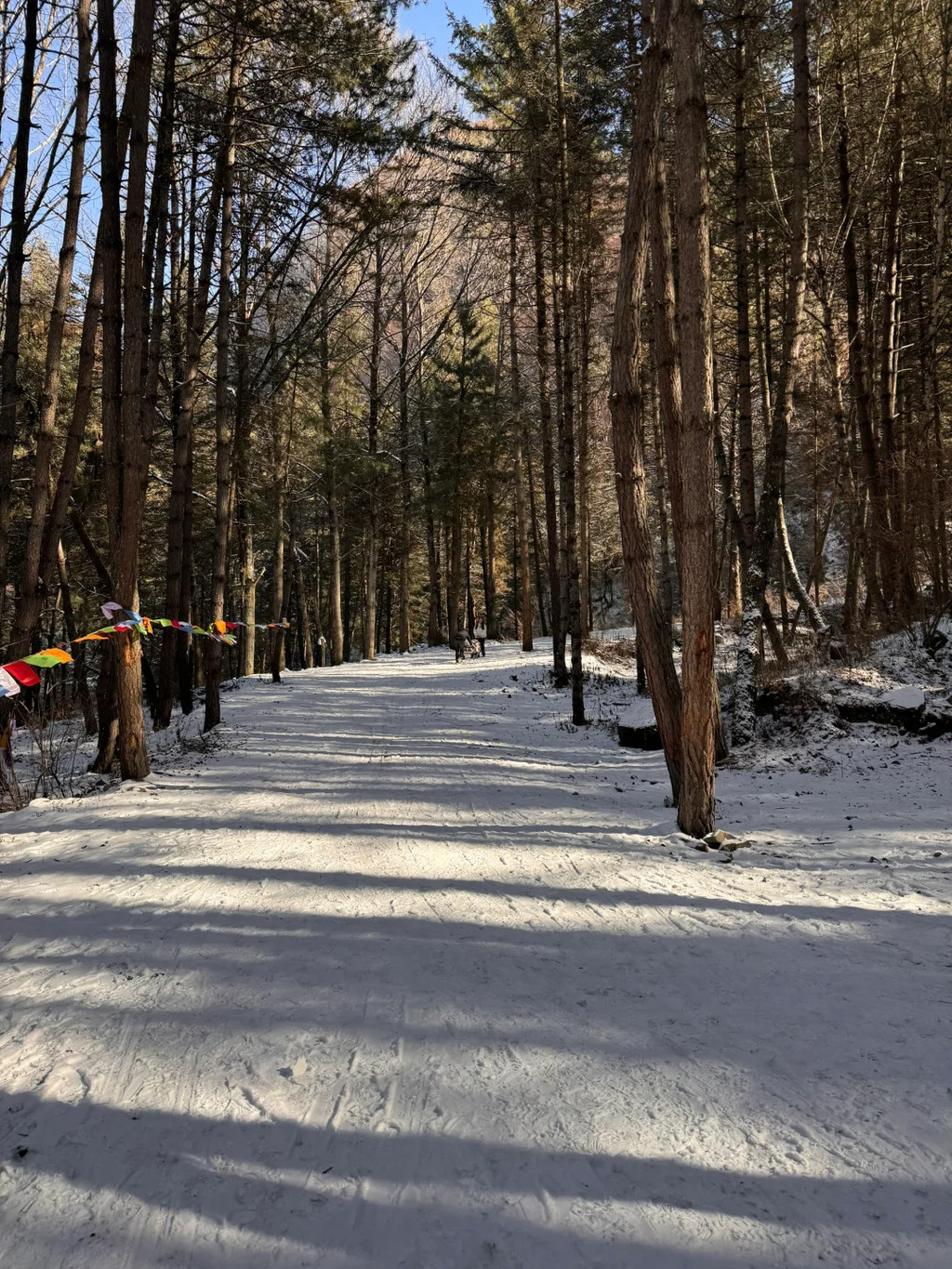 🚶🏻♂徒步路况:徒步道路上冰雪面较多,前往带上冰爪,避免摔倒。停车后从大寺村开始徒步,沿水泥公路徒步约2公里+步道徒步约1公里