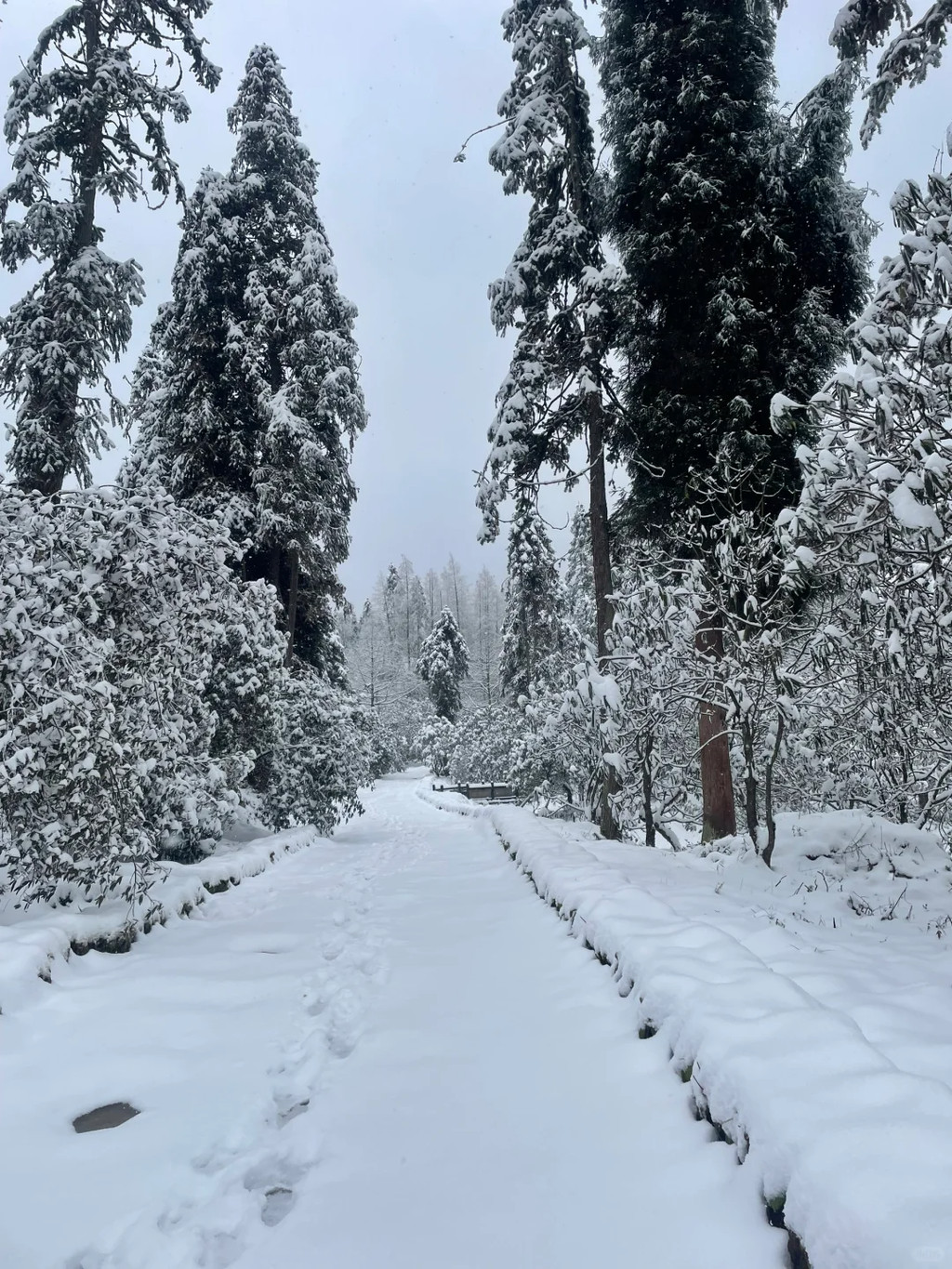 🚶🏻♂徒步路况:徒步起点木伞庵---华光寺(半山腰,全程石阶路,海拔1540-2030米,耗时约1-1.5小时)---天台寺(山顶,石阶路为主,部分为泥巴土路,有部分陡坡,下雪路面较湿滑。海拔2030—2440米,耗时约1-1.5小时)