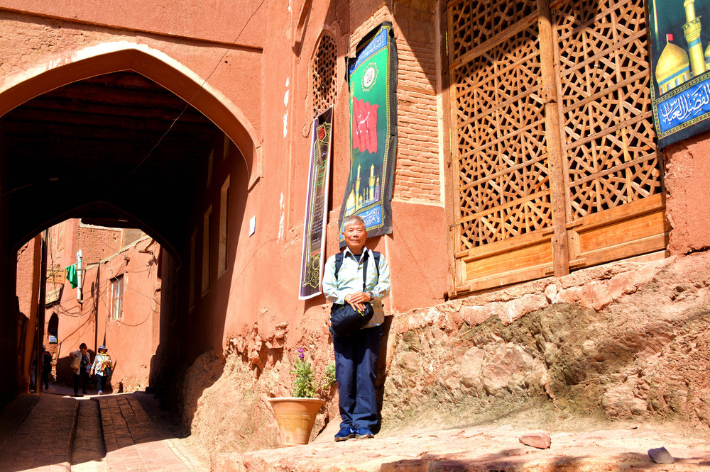 奥比杨奈离开伊朗的中部城市【卡尚】80公里,在伊斯法罕和卡尚的中间。我们是包车去的,我们的包车价格是比较贵的。由于在伊斯法罕实在找不到我们8个人的大面包车,加上8个行李箱。所以一定要委托酒店预订一辆11人以上的大车。直接从伊斯法罕的酒店,送人到卡尚的酒店。早上9点出发,路上经过奥比杨奈,玩3个小时。继续赶路,下午5点到达卡尚郊区的世界文化遗产--费恩花园。继续玩2个小时,再送人到卡尚的酒店,已经晚上7点30了。由于我在伊斯法罕,住宿的是市中心,33孔桥旁边的2套四星级酒店公寓。当时房价被我压得很低,住宿费每天人均7.5美元。所以这次包车,呵呵,酒店小哥来个报复。开价1000万,等于人民币625元。而且一分也不肯还价,无奈实在包不到大车。我算了算路上平均一个人交通费78元人民币,实际真正的价格估计在人均50元人民币。为了8个人不分开,为了不要另外再找出租车,我接受了这个高价包车。不过司机和车辆在伊朗算是一流的。据我了解:走这条线路的人,大部分是包出租车走一天,可以乘坐3个人。每辆黄色的出租车是25美元,我们要3辆出租车,也就是75美元。等于人民币533元。但是我害怕3辆出租车,总是会有先后到达。万一8个人分开找不到了,会有很多麻烦。所以我再三考虑,贵就贵了吧。一路奔驰,中午到达奥比杨奈。奥比扬奈位于伊朗中部卡尔卡斯山脉的一个山谷内,从帕提亚时期就有人居住,至少已有2000年历史。由于地理位置偏僻且自然条件恶劣,居民们曾长期与世隔绝。现在村民仍在使用古老的巴列维语,这在伊朗其他地区非常罕见,因而奥比扬奈被称作伊朗文化的活化石。 村子门口有商店,可以补充一下食物。下面照片是烤馕店,当场出炉,香喷喷的,每个大约人民币3角钱。2个人能够吃饱。这里也叫花婆婆村,因为这里的妇女都带着花头巾。虽然近看破破烂烂,但是是2000年以上历史的联合国教科文遗产,拍成照片也很美,冬天后面能拍到雪山,只是来游玩的人越来越多,后续保护怎么办?它位于伊朗中部卡尔卡斯山脉的一个山谷内,从帕提亚时期就有人居住,至少已有2000年历史。由于地理位置偏僻且自然条件恶劣,居民们曾长期与世隔绝。现在村民仍在使用古老的巴列维语,这在伊朗其他地区非常罕见,因而奥比扬奈被称作伊朗文化的活化石。 走进村子,人们印象最深的是一排排红色的砖土建筑,这是因为房子建造时都取用了红色的粘土。 走进村子,人们印象最深的是一排排红色的砖土建筑,这是因为房子建造时都取用了红色的粘土。而村民的着装与伊朗其他地区也大不相同:女人大多戴着花头巾并穿着宽松的裙子,看上去色彩斑斓;男人则穿着大灯笼裤(比库尔德人灯笼裤还要宽松)。 这个小女孩,只有3个月大。和妈妈一样壮硕,可能这里的人奶水好。我很奇怪,为什么现在中国的小孩子总是养不胖。我和她妈妈聊天:如果给她也配一副太阳镜就完美了。 走在村子的小路上,不时能看到老奶奶们坐在自家门口望着游人们微笑,或在售卖小商品,而这样的生活方式已经持续了十几个世纪。奥比扬奈所在的山谷盛产苹果,由于没有相应的储存设施,村民传统上喜欢把苹果制成苹果干,游客们可以买一些尝尝。这是村子里面的【大清真寺】,其实也不大。伊朗的少数民族人。库尔德人,男人都穿特别宽大的灯笼裤。地址:距卡尚80公里。到达方式:没有公共交通直达,从卡尚包车往返约200--250万里亚尔。等于人民币150元左右。一家农村土咖啡馆,里面2位游客在玩自拍。我一个人爬到山顶上,拍到一位妇女在房子顶上晒杏干。原始的痕迹越来越少,连老奶奶们都拿着三星。倒是遇到几个穷游来自不同国家的伙伴,结伴走着聊着,穿过红房子和绿树。这感觉倒是真的像旅行了。奥比扬奈村在卡尚到伊斯法罕的路上,是一座很有味道的村庄,里面已经没有什么人了,年轻人都出去了,只有留守的老人和孩子~·这里不像国内那些所谓古村落,里面摆满商品,这里就真的是一座小村落。只有居民,和静谧的游客。最初是冲着花头巾老奶奶们去的,最后发现村里并没有几个,遇到的两个老奶奶还是很和蔼的让我们合影。村子就和卡尚类似,都是黄土小屋子,很推荐爬上对面的山头看全景。如果要去,可以跟司机说,他会安排人带去上山下。如果要爬山,最后一段有点陡,鞋子要穿舒适一点。山上能看到小村子全景,还是挺好看静谧的家园。年轻人都不在了。从老人眼神里可以看出,老人们也许更希望游客多一些,背负了千年古村的名号却又一直富裕不起来。这样的村子在伊朗还有很多个。下面照片的旅游车司机,与我们在其他城市曾经见过,而且与我交流过很长时间。这次没想到在这里又见面了。我们交谈甚欢,。。。。