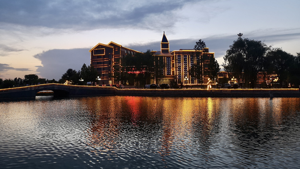 阿克苏迎宾湖边维也纳国际酒店,夜色美美哒!