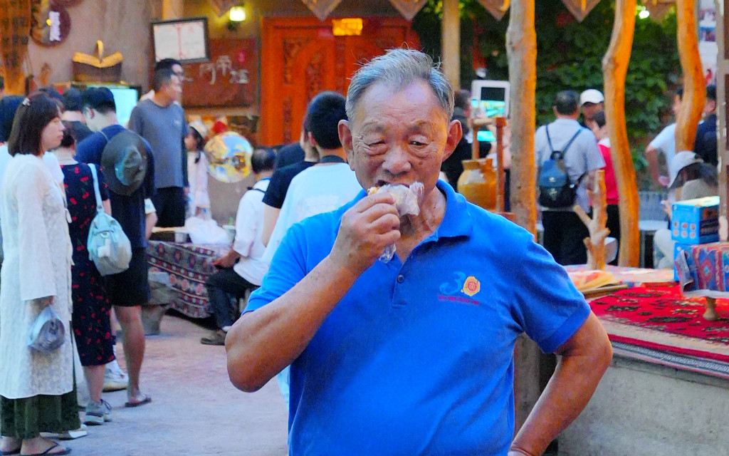 路过一家卖馕的摊位,店名“爷爷的爷爷的爸爸的馕”,摊位虽小,但生意却异常火爆。我们买了一小块尝鲜,口感挺不错。到这时我才发现,自己的“暴食后遗症”其实只是排斥肉类。