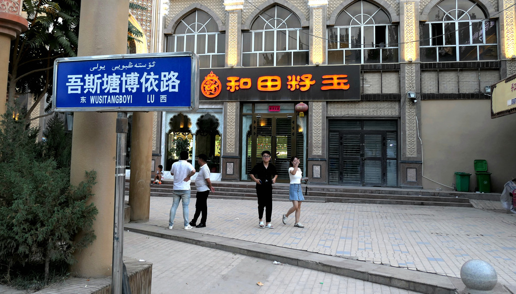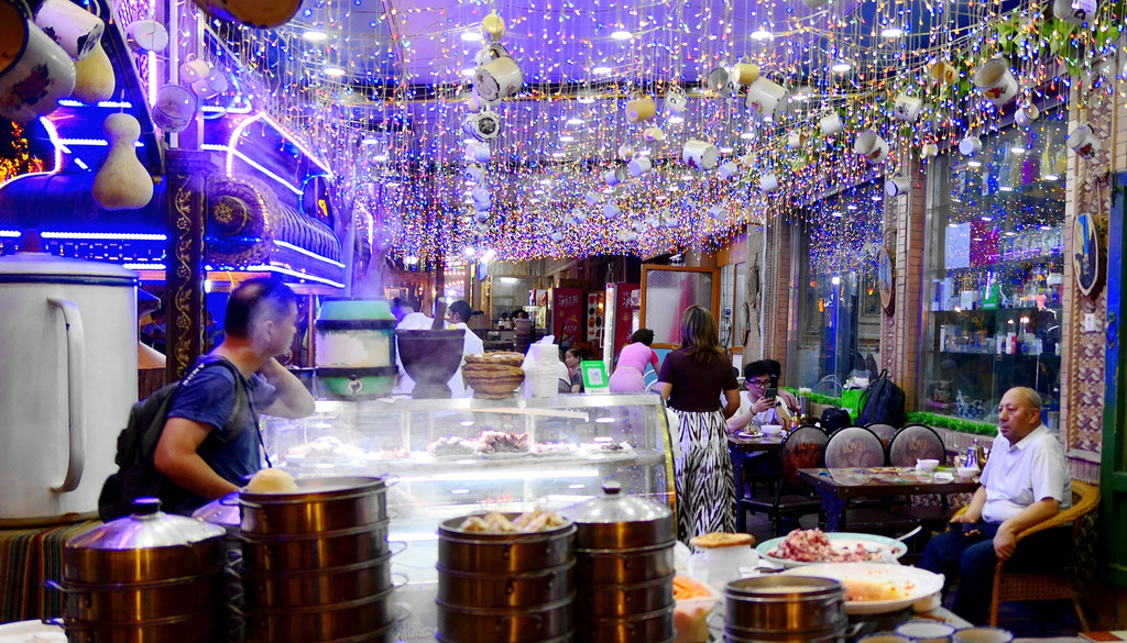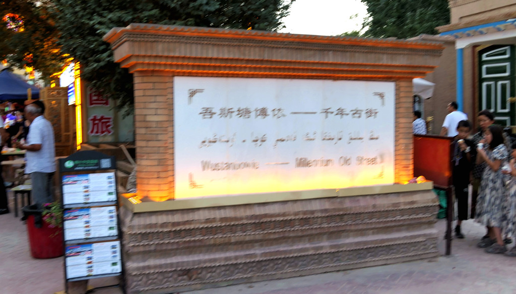 在我们吃饭餐馆的北侧,有一条东西走向的千年古街“吾斯塘博依路”,相传,这里曾是两千多年前古疏勒国的王宫旧址。500多年前艾提尕尔清真寺落成后,因为这一带地域与著名清真寺毗邻,随即发展成为一条喧闹繁华的古城主街。