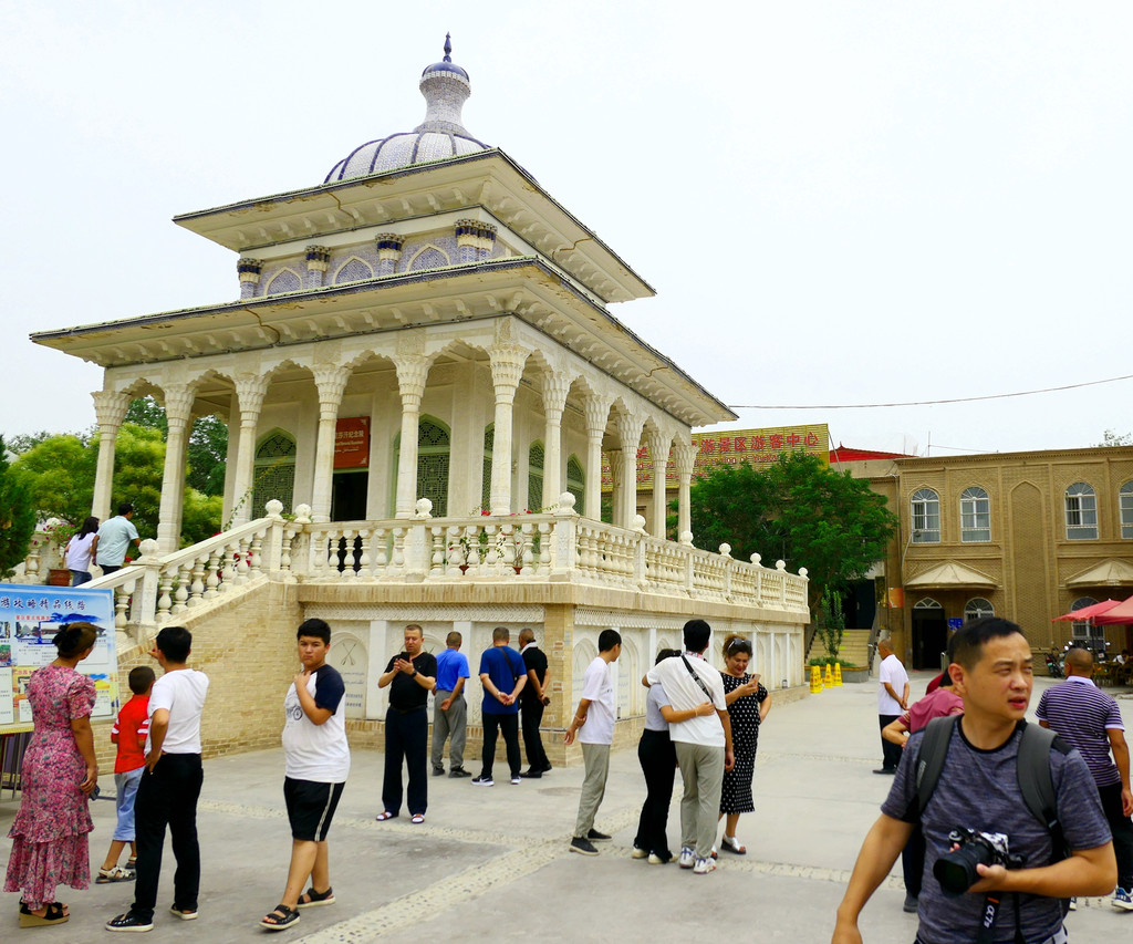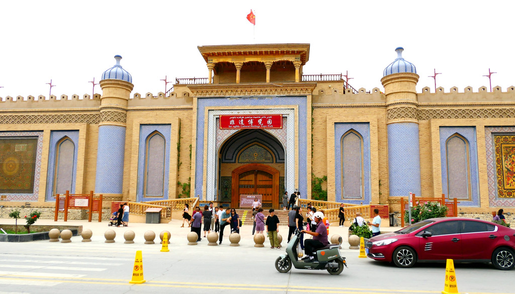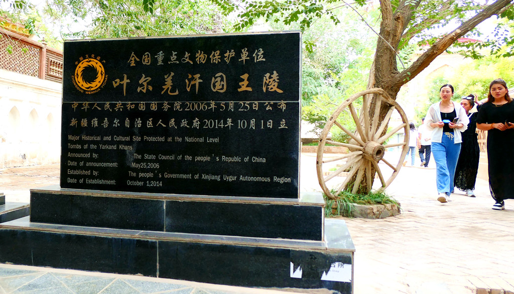15:05通过莎车界,随即跨越叶儿羌河,15:10穿越土和高速的莎车收费站,15:15下高速,进入喀什地区的莎车县。15:19看到路边有大字“莎车欢迎您”,15:20进入莎车城区,15:40抵达现在被称为是“非遗博览园”的莎车王宫旧址。目前,博览园因内部装修暂停开放,我们只是参观了位于博览园对面的叶尔羌汗国王陵。