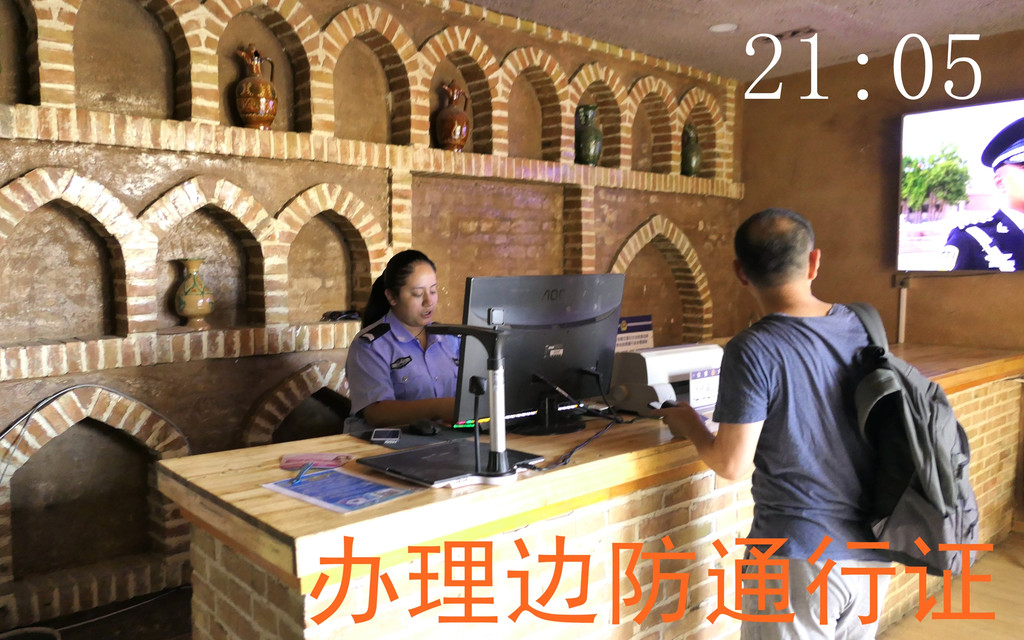 没等多久,就有一位女警出来为我们办理边防通行证,手续简便快捷,只需出示身份证即可。我为耽误她用餐而道歉,她只是说:“那有什么办法,我才刚端起饭碗,你们就来了”。 21:00办好通行证,此时新疆的天色,大致是相当于内地下午7点左右。新疆民警服务态度之好,让我们颇为感动,她即便是让我们等她吃完饭再过来,我们也不会有啥意见。毕竟是我们自己来得太晚。