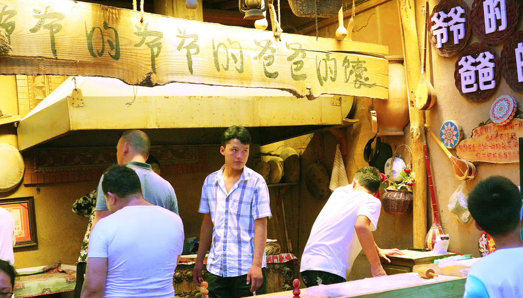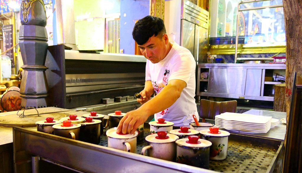 古街处处飘荡着美食的香味,X.J.对“缸子肉”情有独钟,坐下吃了满满一罐。而我则是还没从昨晚和田夜市的“暴食后遗症”中缓过劲儿来,没有跟他同享。