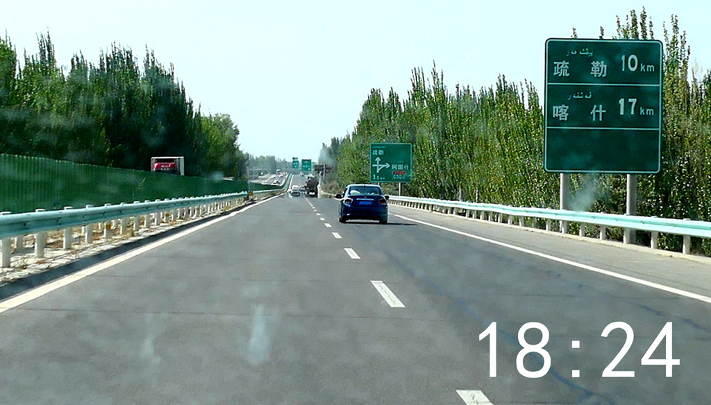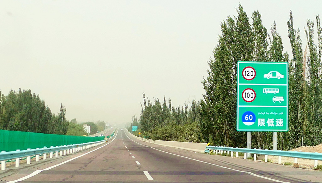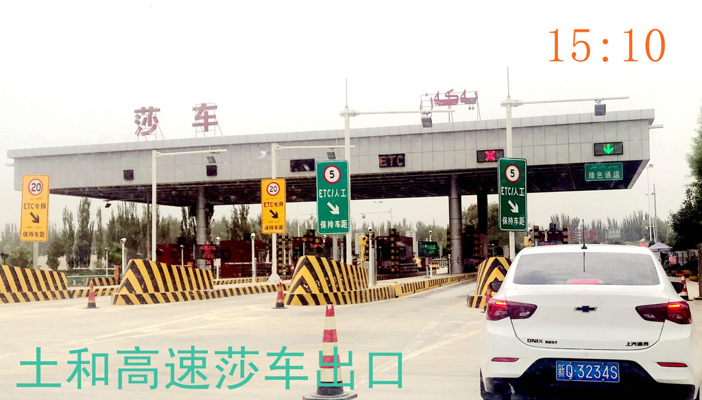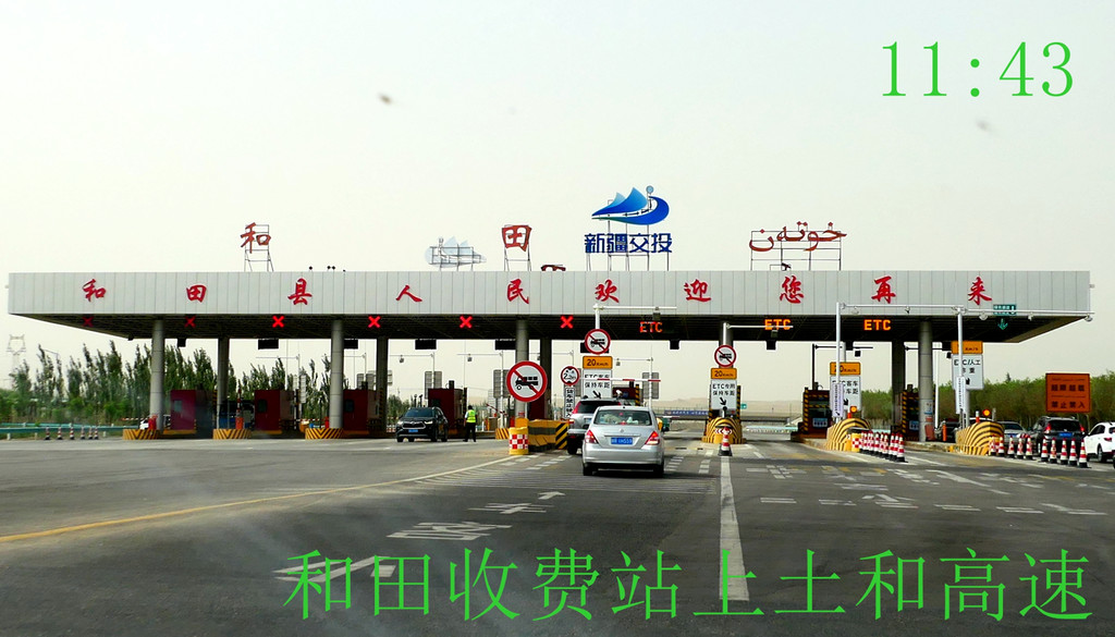 早餐后回房间收拾行李,11:04退房出发,11:07加油240元。11:43在和田收费站上土和高速,驶往喀什方向。土和高速最高限速120公里/小时,最低限速60公里/小时。