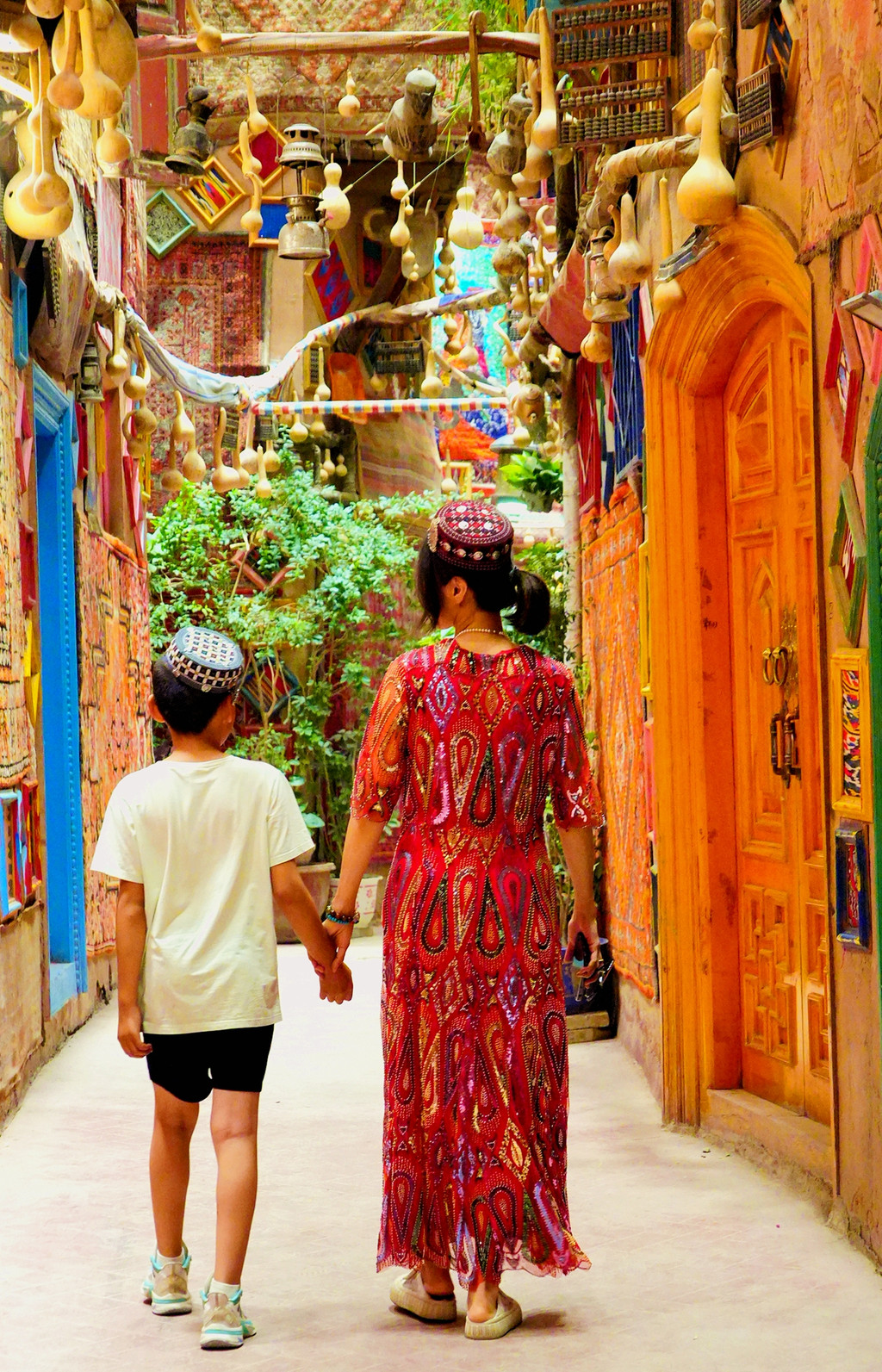 喀什古城是国内保存最完整、古西域风格最浓郁的城市街区。纵横交错的街巷蜿蜒曲折,土木、砖木结构的民居鳞次栉比,许多都已历经百年岁月。不知疲倦的孩童在巷子里嬉戏,他们的笑声在街巷中回荡,也为古城增添了勃勃生机与活力。