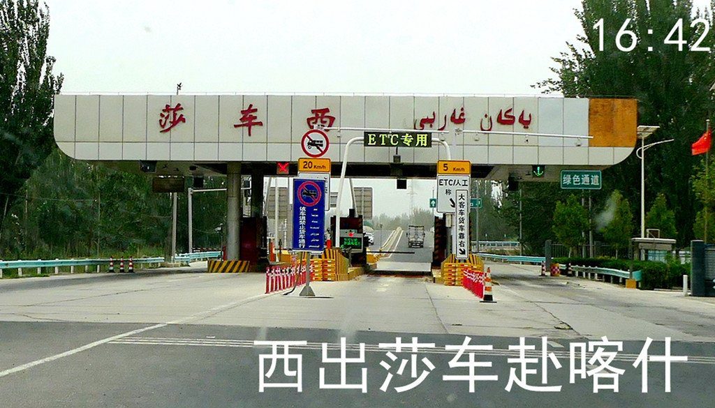 16:42经“莎车西”收费站再上土和高速,继续西行。18:32在疏勒互通立交驶离土和高速,进入喀什地区疏勒县,加油。疏勒县与喀什市紧邻,加完油后经疏勒县的疏勒大道直接转入喀什市昆仑大道,进入喀什市区。19:23入住位于解放北路与土曼路交汇路口的锦江都城酒店(喀什古城景区店)。