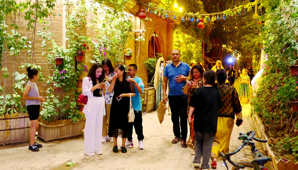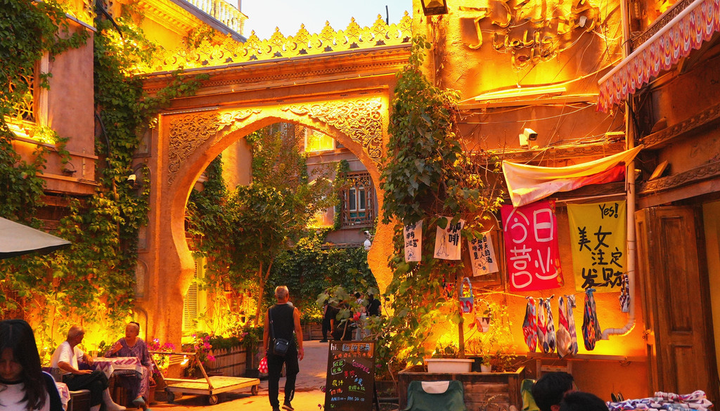 进入客房稍事安顿,20点左右出发,前往酒店近旁的喀什古城,观光、吃晚餐、顺便也办理边防通行证。两日后准备前往塔什库尔干塔吉克自治县观光、游览,按照规定,必须持有边防通行证。古城距离酒店不足900米,我们选择步行前往。