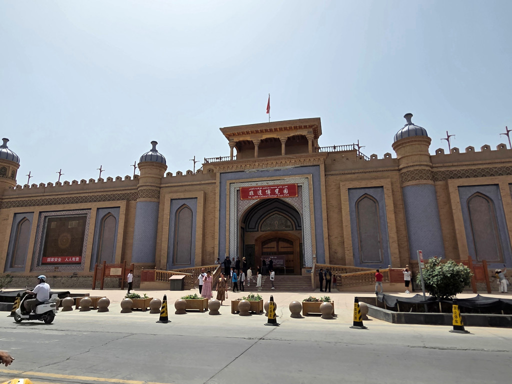 上午顺利完成办理边防证和汽车保养,下午游览了香妃园、艾提尕尔清真寺等景点。