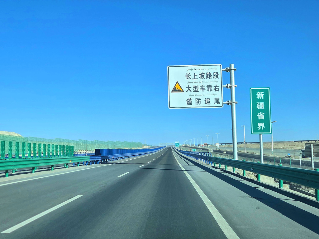 1、从进入新疆开始,一路都是新建的高速公路,路面平坦,车辆不多,走起来非常舒服。
