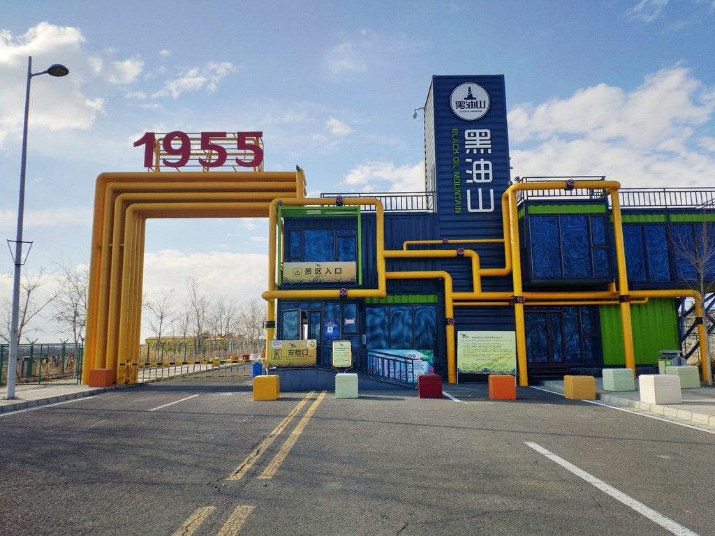 到了景区门口,看到1955、黑油山。刚好这阵子免票,直接检查下绿码就可以进入景区。