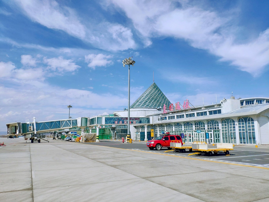 克拉玛依机场3月27日下午到 克拉玛依 ,机场不大,天气很好,蓝天白云,塔台写有 克拉玛依 ,大红字特别醒目。下飞机后我习惯性地快步去到达大厅取行李箱,结果好奇怎么开始有人拖着行李箱了,一看,原来两车行李已经拉着放在过道上了,大家各自去挑,也是高效率省事哈。21年3月,出机场,要14天内有效核酸检测,好在19号做的还有效,不然现场做估计有得等了。