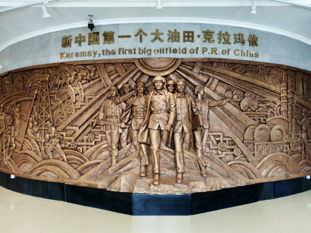 进入展馆,迎面看到的是一幅巨大的铜浮雕,那是 克拉玛依 石油工人的最生动的写照。这座城,就是因他们而来。