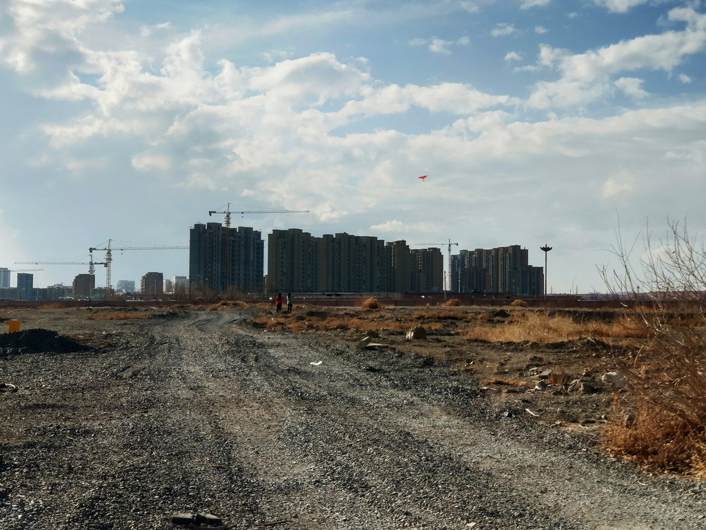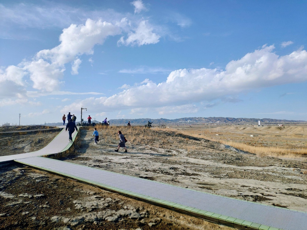黑油山从博物馆出来,走到黑油山。真的是路很宽,地很广。走起来好费劲,看着不大,动不动就六七百米。看到旁边有两人在放风筝。