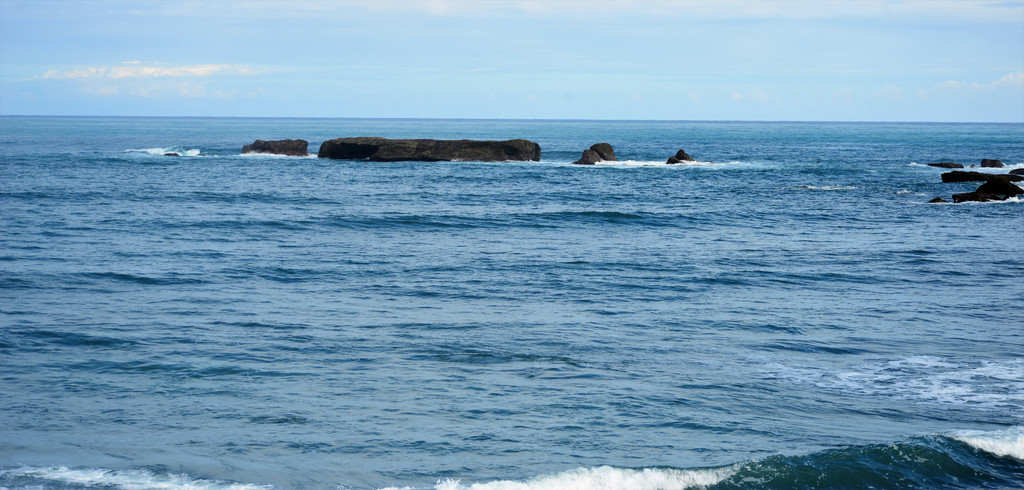 猫鼻头外形酷似蹲伏之猫,因而得名,为台湾海峡和巴士海峡分界点,并与鹅銮鼻形成台湾最南的两端。垦丁国家公园被誉为台湾的夏威夷。由于垦丁国家公园生态环境保护的格外好,所以蓝天日数很多,因此猫鼻头海景尤其美。碧蓝天空和湛蓝海洋相连,天空白云和海洋浪花相对,脚下是美丽的沙滩,你置身在这景色中是怎样心情呢?