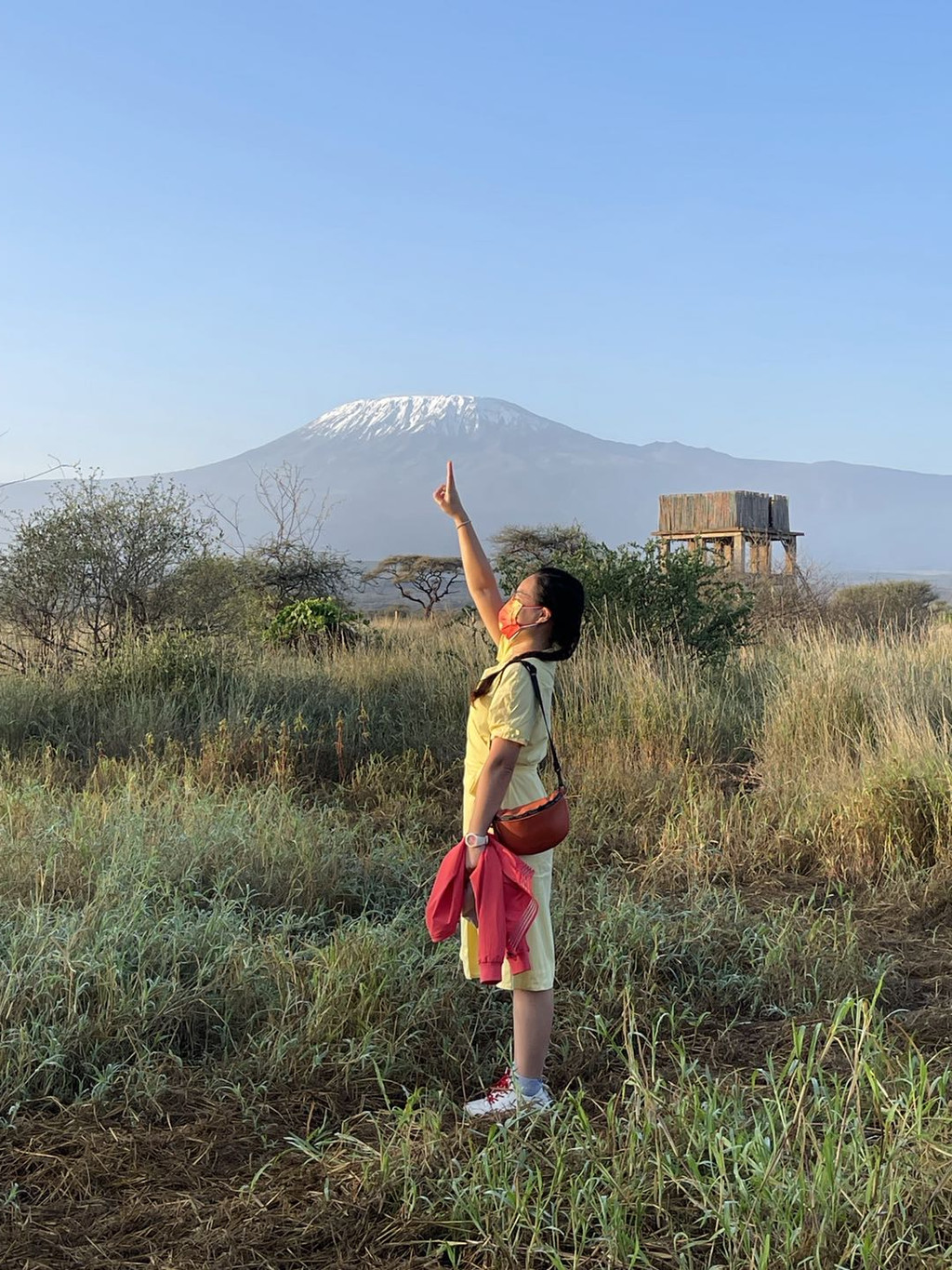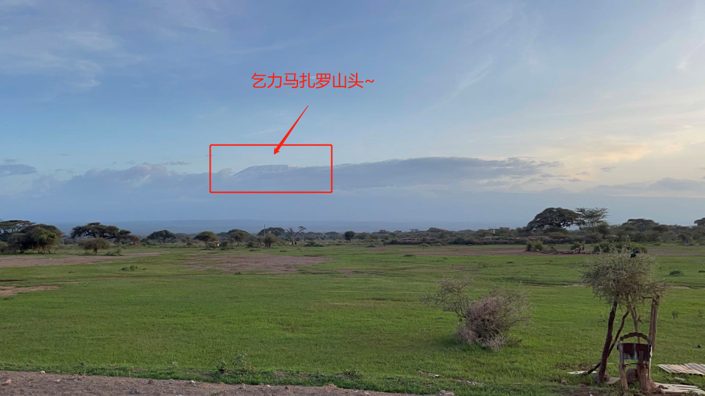 差不多6点半的时候返程回酒店,路上看到了冒头的乞力马扎罗,老开心了!