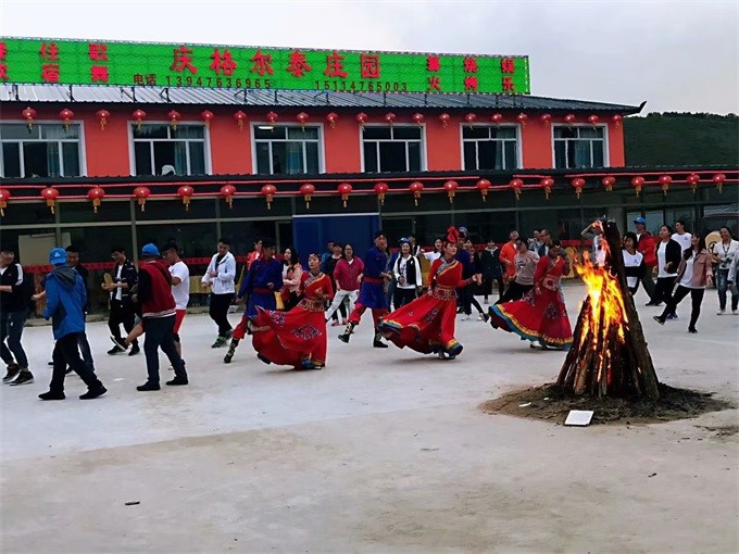 酒足饭饱后仰望清澈的天空和一望无垠的草原。跟着我们热情的蒙古族帅哥美女们唱一首蒙古歌曲,围着篝火来上一段舞蹈。美滋滋啊!